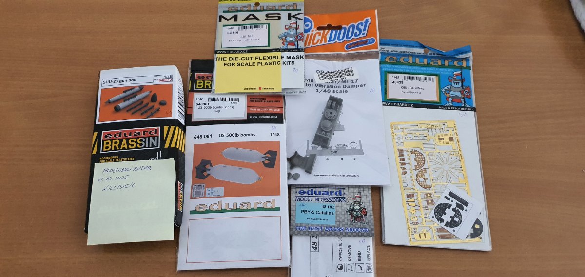 Jerry Napisano 4 Października Share Napisano 4 Października (edytowane) Witam - Ka-50 Italleri/Revell w skali 1:48. Model kompletny, nowy zafoliowany. Kalki jak nowe. Dodatki to: Koła Reskit, Działko Aires, Blaszka Eduard, 3 zestawy drogich Metalic Details Cena 600 zł plus opłata za gabaryt B według cennika inpost. Model wystawiony też na faceboku Ps. Możliwa wymiana na modele wspólczesne 1:48 z równowartością np: F-35A Tamiya, F-14A Tamiya, F-15 C/D GWH, F-22 Hasegawa - CH-53E MRC/Academy. Jedno z pierwszych wydań. Model kompletny. Trochę części luzem, ale taki kupiłem. 100% kompletny. Kalki stan idealny. Z dodatków 98 procent wszystko co na rynku. Nie mam tylko żywicznych kół od reskita. W zestawie są 2 rotory złożony i rozłożony. Żeniąc te 2 zestawy możemy mieć ruchomy system składania łopat. Wartość dodatków około 1200 zł Cena za całość 1600 zł. Wysyłka paczkomatem gabaryt C Sprzedaję tylko w całości. Uwaga, możliwa wymiana w wyżej wymienionej kwocie na modele w skali 1:48, lub z dopłatą Co mnie interesuje. F-15C/D GWH, F-22 Raptor Hasegawa, F-35A, C Tamka, F-14 A Tamka lub GWH, kinetic hawkeye, Ps. Model wystawiony także na Łódzkim bazarze modelarskim - kalkomanie AMDG P-47:148 "Eith Gun Melody" Stan sklepowy 60 - książka z kalkomaniami Smi Library B-26 i A-26 Stan sklepowy 40 zł Do cen należy doliczyć paczkomat gabaryt A. -Eduard Brassin 648612 SUU-23 Gun Pod 40zł -Eduard Brassin 648081 US 500lb bomb 35 zł -Eduard EX116 SB2U Maski ACCURATE MINIATURES 20zł -Eduard 48182 PBY-5 Catalina (już niedostępne) 50zł SPRZEDANE -QUICK BOOST MI-8MT/MI-17 Rotor Vibration Damper 20zł -Eduard 48439 C6N1 Saiun/Myrth Hasegawa 50zł Wystawione także na Łódzkim Bazarze Modelarskim Opłata wysyłki według cennika Inpost Gabaryt A Edytowane Niedziela o 12:57 przez Jerry Odnośnik do komentarza Udostępnij na innych stronach More sharing options...