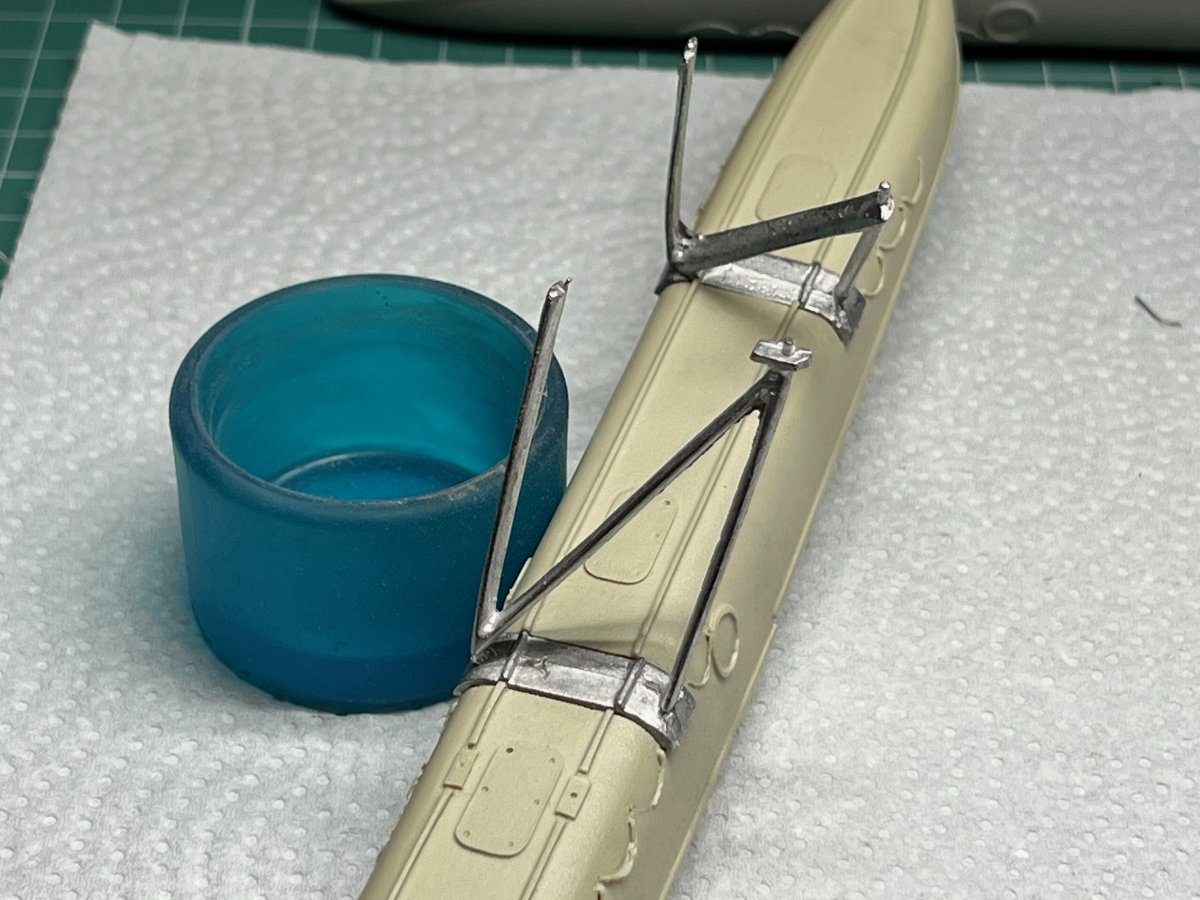 KP.Taurus Napisano Środa o 20:22 Share Napisano Środa o 20:22 Można byłoby przeciąć ten dolny wspornik obejmujący pływak w połowie, tak aby dopasować go na szerokość do wycięcia w pływaku. I ewentualnie spróbować go zlutować ponownie na tym przecięciu lub jeśliby to nie było możliwe to spróbować przykleić jedynie żywicą metalowe wsporniki. Ale być może lepiej wykonać to w całości z hipsu jak radzi Albatros, a te metalowe potraktować tylko jako wzorzec. 1 Cytuj Odnośnik do komentarza Udostępnij na innych stronach More sharing options...