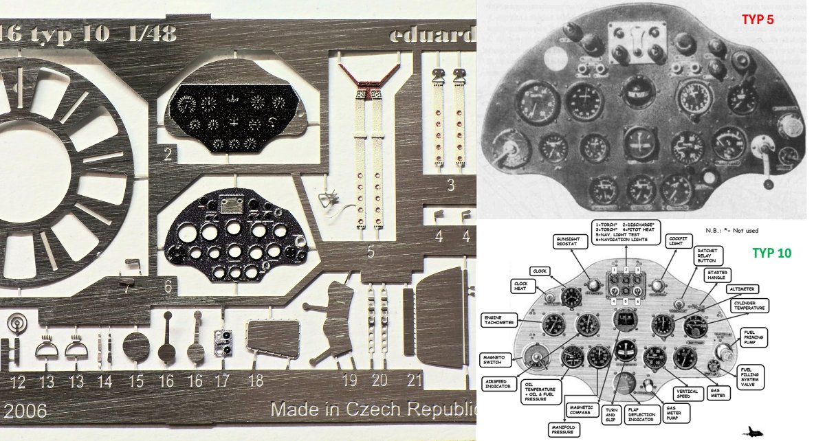 jachud3 Napisano 4 godziny temu Autor Share Napisano 4 godziny temu Miał być szybki projekt, a zacząłem (niestety ) trochę grzebać no i nie podoba mi się co odkryłem, bo dodaje roboty Posiłkując się wspaniałą stroną Massimo Tessitori'ego namierzyłem parę miejsc do korekty. Najprostsza do wyłapania była tablica przyrządów; Eduard w plastiku i na blaszce daje tablicę od typu 5 z asymetrycznym wycięciem na górze. Typ 10 został dozbrojony w dwa karabiny ShKAS umiejscowione nad silnikiem, więc tablica została symetrycznie "wycięta" w miejscach, w których w kabinie wystawały uchwyty karabinów. Zakładając, że Eduard oferując malowania do modelu "typ 10" ma jakieś uzasadnienie że to naprawdę był typ 10 (bo plastik ewidentnie przedstawia typową maszynę seryjną z silnikiem M-25V), to albo trzeba się uzbroić w poprawną tablicę od Yahu, albo przerabiać. Te tablice różnią się nie tylko kształtem, ale i umiejscowieniem zegarów, więc wybrałem trzecią drogę - najwygodniejszą, tzn. udaję że tego nie znalazłem i montuję zestawową blachę i tak jej praktycznie nie będzie widać w czeluściach kokpitu, ale wspominam o tym dla tzw. potomnych Kolejna rzecz to wyrzutniki łusek - Eduard odlał jedną na lewym skrzydle, ale zapomniał o drugiej, asymetrycznie położonej, na prawym. Trzeba wyskrobać. Dodatkowo trzeba też usunąć żebro i nerkowate okienka z wnęk podwozia; typ 10 miał małe kanciaste okienko, które Czesi dali w formie blaszki (część nr 18 na powyższej grafice). Ostatnią rzeczą, którą na szybko wyłapałem, był brak imitacji kształtu pod rozrusznik na wale śmigła - szybko poprawione W międzyczasie rozdłubuję sobie wiertełkiem wydechy i dobieram średnicę igły pod zastąpienie plastikowych kikutów luf karabinów skrzydłowych. Na razie więc nuda 3 Cytuj Odnośnik do komentarza Udostępnij na innych stronach More sharing options...