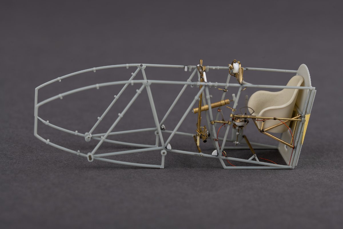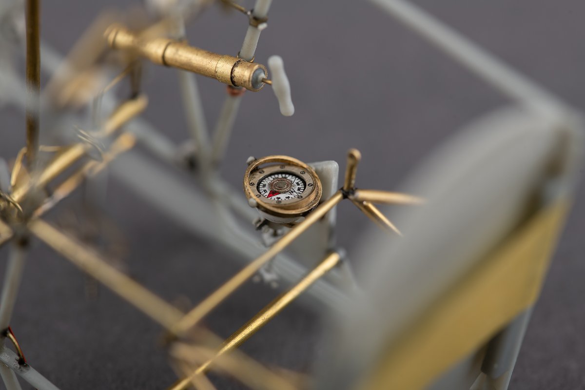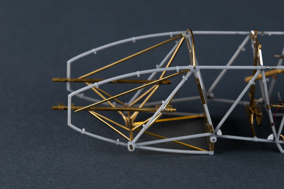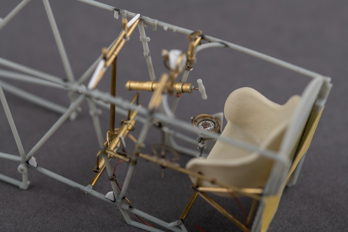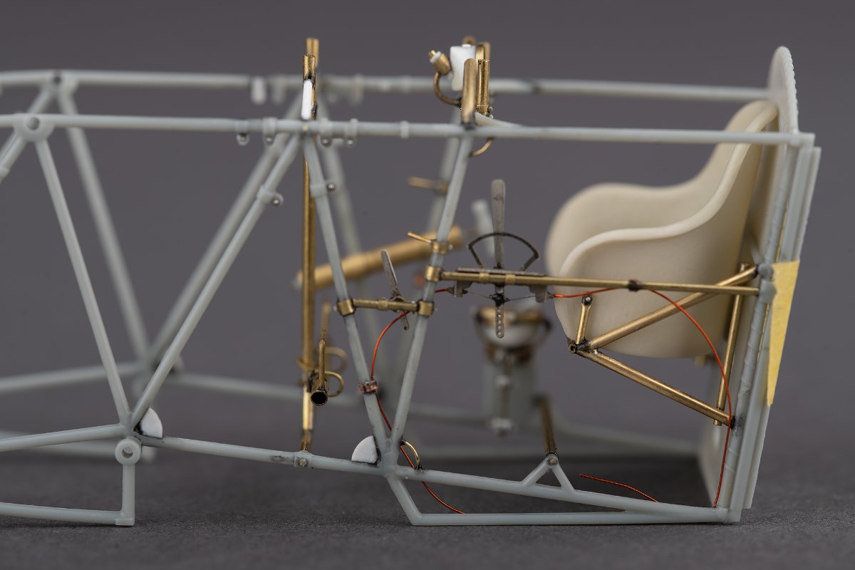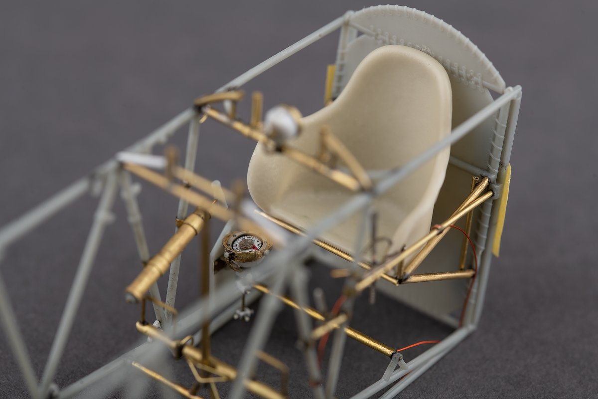 Albatros Napisano Niedziela o 22:28 Autor Share Napisano Niedziela o 22:28 (edytowane) Dziękuję wszystkim bardzo za miłe słowa i cieszę się, że się podoba. @greatgonzo myślę, że znów mocno nadinterpretujesz i nadbudowujesz moje słowa i w zasadzie na każde stwierdzenie z ostatniego posta mam kontrargument, ale wydaje mi się, że to wątek warsztatowy i chyba część osób jest już zmęczona dyskusją filozoficzną i dzieleniem każdego włosa na czworo, a mnie samego duch modelarstwa zaczyna straszyć po nocach więc może dyskusję filozoficzną kontynuujmy w innym wątku, aby nie gmatwać warsztatu Więc na ten moment dość już teorii i przejdźmy do praktyki i warsztatu. Po zakończeniu MiGa zabrałem się nieśpiesznie z powrotem do pracy i oto efekty, jakie przez te kilka miesięcy udało mi się osiągnąć. W pierwszej kolejności chciałem zająć się wręgą z naciągniętym płótnem za fotelem pilota. Na poprzednich zdjęciach widać, jak wygląda część zestawowa, od początku chciałem ją wymienić, ponieważ wydawała mi się zbyt płaska, uproszczona. Ja chciałem zaakcentować, że mamy do czynienia z płótnem, a ponadto podkreślić sznurowane mocowanie płótna do konstrukcji, zrobić je bardziej ażurowe. Problem polegał na tym, że w konstrukcji modelu ten element ma duże znaczenie, aby utrzymać wszystko w kupie i geometrii. Nie bardzo chciałem ją wykonywać od podstaw, bo było tutaj zbyt wiele zmiennych, dlatego wyjściem wydał mi się druk 3d. Poprosiłem o pomoc @Sasiniz Ace Projekt Studio, znając Jej znakomite zestawy z działu pancernego, i po wymianie maili, wiadomości i rysunków Ala wykonała kawał świetnej roboty. Początkowo chciałem mieć wydruk tylko wręgi i płótna, a linkę zaplatać sam. Jednak Ala tak świetnie zaprojektowała całość, że uznałem, że nie ma co wyważać już otwartych drzwi. Kolejnym problemem była konstrukcja górnej części wręgi. W Fokkerze D.VII górna część tej wręgi była wykonywana na dwa sposoby - tak jak w części zestawowej, był półokrągły pałąk i między nim rozpięte płótno. Całość była lekko cofnięta i schowana pod górnym pokryciem kadłuba. Jednakże w Fokkerze w Knowlton - a po dokładnym przestudiowaniu zdjęcia w 382/18 również - zastosowano nieco inne rozwiązanie. Płótno w górnej części nie było rozpięte między rurkami wręgi, a przymocowane do otoku włazu do kokpitu, tworząc coś w rodzaju "kołnierza" dookoła tylnej części włazu. Po długich przymiarkach Ala pięknie zaprojektowała i taką wersję, która wydawała się pasować idealnie. Niestety nie byłem w stanie wysłać jej całego kokpitu, a tylko połówki kadłuba i po wstępnym montażu już do kokpitu okazało się, że jednak "kołnierz" jest zbyt cofnięty i nie przylega do włazu. Odpuściłem na razie kolejne poprawki u Ali, i samemu spróbowałem - na bazie wydruku - poprawić kołnierz "dorzeźbiając" go z Tamiya Epoxy Putty Smooth. Na ten moment wygląda nieźle, muszę położyć podkład, aby sprawdzić powierzchnię i potem już wyrzeźbić fałdy i pomarszczenia. Zdjęcia Fokkera D.VII z Knowlton z charakterystycznym "kołnierzem" dookoła włazu do kokpitu. Na zbliżeniu zdjęcia 382/18 widać, że najprawdopodobniej ten element jest rozwiązany tak samo. Dodatkowo na tym zdjęciu widać, że płotno jest gładkie, bez nadrukowanej lozenge. Zgadza się to ze stwierdzeniem Achima Engelsa w [A4], że pierwsze partie Fokkerów nie miały płótna z lozenge wewnątrz, było one wykorzystywane dopiero w późniejszych egzemplarzach. Na zdjęciu widać piękne wydruki od @Sasini, również mała, półokrągła wręga z płótnem montowana do przedniej części ramy, nad płytę oddzielającą przedział silnikowy od zbiornika paliwa. Odkryłem jednak jeszcze jedną informację, która rzuca światło na ewentualne uszkodzenia samolotu, które zaszły już w trakcie walki, a których na zdjęciach nie widać (obszar ten jest w głębokim cieniu). Wusthoff opisuje: "[...] Teraz próbowałem wszystkiego, żeby ponownie uruchomić silnik, ale na próżno – zbiornik paliwa został przebity, a przewód do zbiornika awaryjnego najwyraźniej się zatkał. Huk – kula trafiła w zbiornik paliwa, z którego natychmiast buchnął płomień. Po krótkim namyśle postanowiłem odpiąć się i wyskoczyć z płonącego samolotu. Wolałem życie i zdrowie niż śmierć w płomieniach. Gdy się odpinałem, ogień zgasł z powodu pionowego lotu nurkowego i silnych podmuchów wiatru. Benzyna się wypaliła – szczęście, które towarzyszy lataniu. [...]" [A5] Z tego fragmentu wspomnień Wusthoffa wyciągam dwa wnioski - po pierwsze na kadłubie w okolicach zbiornika paliwa, w kierunku kokpitu (i być może w spodniej części górnego centropłata) musiały pozostać ślady ognia - jakieś osmalenia na górnej blaszanej osłonie. Pożar nie mógł być duży, bo samolot by po prostu eksplodował (zbiornik paliwa jest też bardzo blisko zasobnika z amunicją do MG 08/15), jak również udało się go ugasić w locie nurkowym. Nie mógł się też bardzo rozprzestrzenić, bo ogień szybko zająłby łatwopalne płótno. Na zdjęciach nic takiego nie widać, więc pożar miał stosunkowo mały zasięg, ograniczony do bezpośredniego sąsiedztwa zbiornika paliwa. Niemniej zamierzam uwzględnić ślady tego zdarzenia na moim modelu - a taki mały kawałek płótna w bezpośrednim sąsiedztwie zbiornika raczej na pewno został przynajmniej nadpalony. Z wielkim żalem zrezygnowałem z montażu wydrukowanej już części i wykonałem ten element z rurek, a nad wypalonymi resztkami płótna będę się zastanawiał (być może @Sorispomoże ). Wręga ze stelażem na fotel pilota - wykonanym z rurek, śruby motylkowe od Taurus Models. Dość karkołomnym pomysłem była za to koncepcja wykonania od podstaw z rurek mosiężnych konstrukcji łoża silnika. Do ostatniej chwili nie byłem pewi