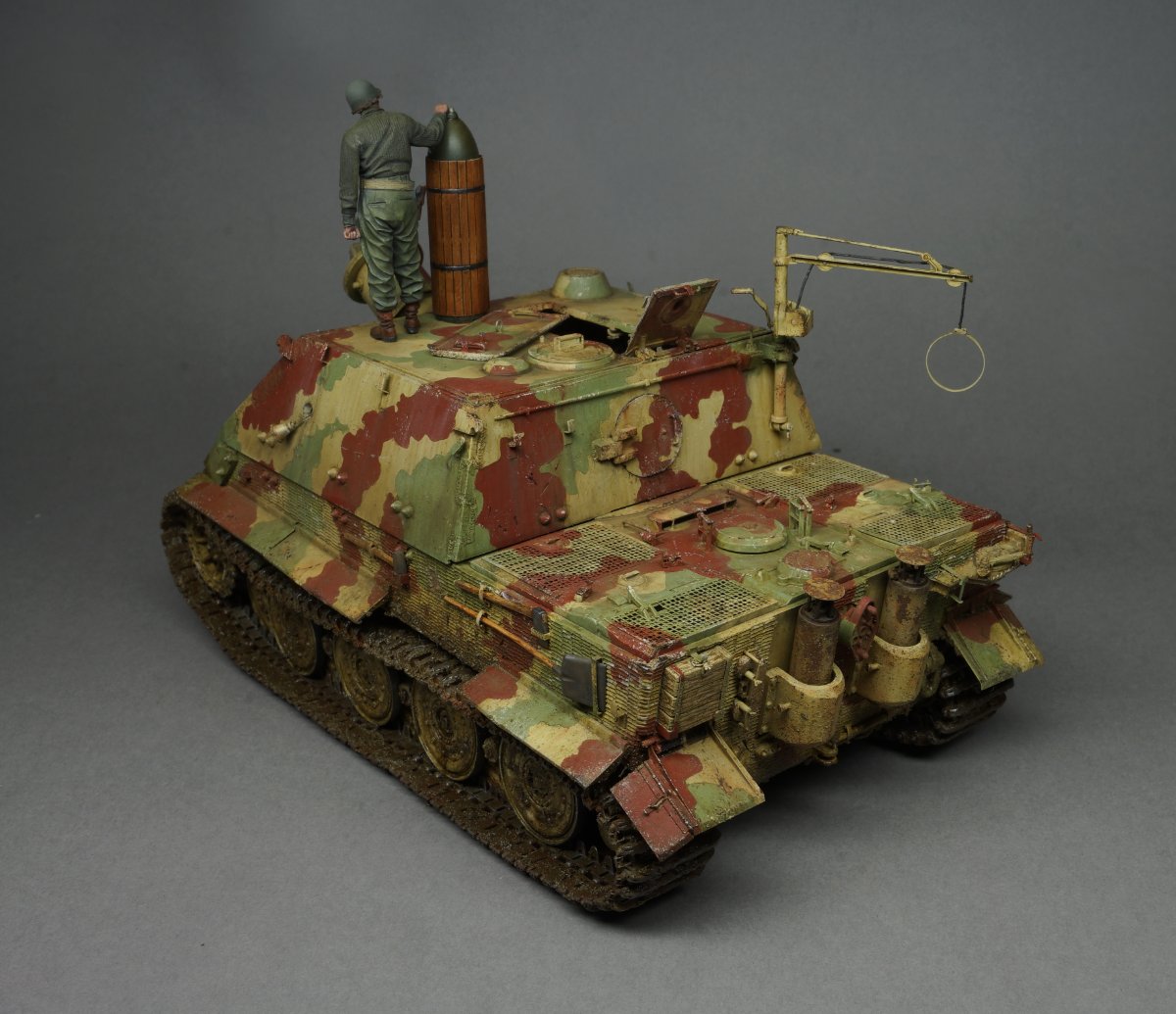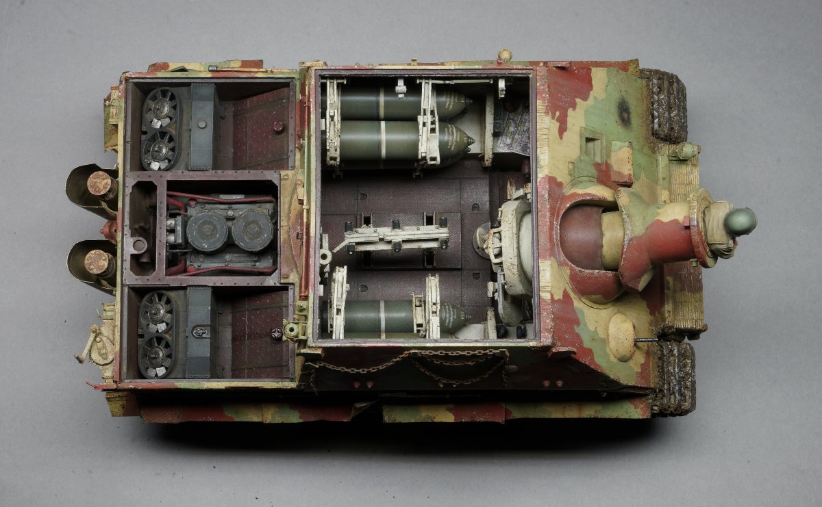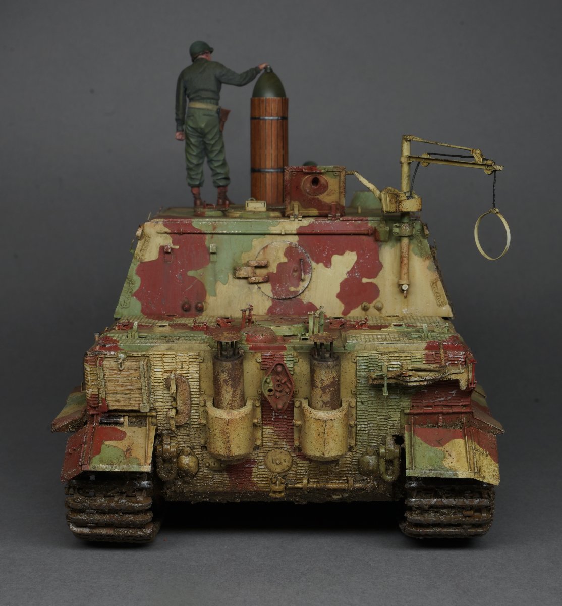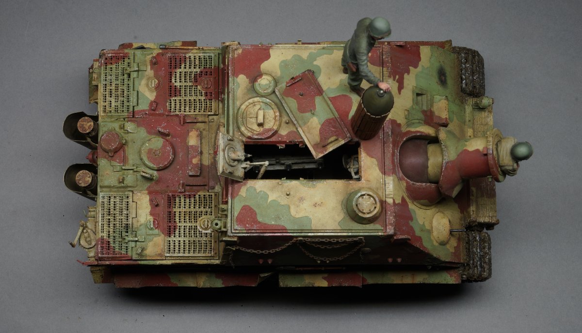 patrykd Napisano Sobota o 22:44 Share Napisano Sobota o 22:44 (edytowane) Po kilku wcześniejszych projektach postanowiłem zmierzyć się z czymś bardziej wymagającym i wybór padł na Sturmtigera w skali 1/35 od Rye Field Model. To zestaw, który od początku przyciąga bogatym wnętrzem i solidnym odwzorowaniem detali, ale też wymaga cierpliwości i dokładności. Model wykonałem w wersji z pełnym wnętrzem, obejmującym zarówno przedział bojowy, jak i silnikowy. Praca nad środkiem była jednym z bardziej satysfakcjonujących etapów – sporo czasu zajęło brudzenie podłóg, dopracowanie detali i wózka z pociskami. Gąsienice zaskoczyły mnie pozytywnie – mimo sporej liczby ogniw montaż był bardzo wygodny. Przy budowie zdecydowałem się na niewielkie poprawki powierzchni, ale faktura stali walcowanej i odlewów w zestawie okazała się na tyle dobra, że pozostawiłem ją praktycznie bez zmian. Nie obyło się oczywiście bez kilku wyzwań montażowych – dopasowanie wnętrza i płyty silnikowej wymagało trochę cierpliwości, ale finalnie wszystko złożyło się poprawnie. Jeśli chodzi o malowanie, zależało mi na realistycznym, ale nie przesadnie „umęczonym” wyglądzie. Sturmtigery brały udział w działaniach bojowych w bardzo ograniczonym zakresie, więc model nie został nadmiernie zużyty. Postawiłem na kamuflaż zgodny z historycznymi przykładami oraz umiarkowany weathering, podkreślający ciężar i charakter pojazdu. Całość uzupełniają drobne dodatki, elementy fototrawione jak i żywiczne figurki e – mam nadzieję – dobrze oddają klimat późnowojennego niemieckiego działa szturmowego. Budowa była czasochłonna (niewieleponad rok), ale bardzo satysfakcjonująca. RFM ponownie potwierdził, że potrafi robić świetne zestawy, a praca nad tym modelem pozwoliła mi dopracować kilka nowych technik malarskich i brudzenia wnętrz. Dziękuję wszystkim, którzy zaglądali do wątku warsztatowego, komentowali i doradzali w trakcie budowy. Mam nadzieję, że efekt końcowy przypadnie Wam do gustu. Zapraszam do komentowania i oceniania. Link do warsztatu Na początek przypomnienie jak wyglądał surowy model po budowie. A tak wyszło finalnie Parę zbliżeń poniżej. Edytowane 23 godziny temu przez patrykd 13 Cytuj Odnośnik do komentarza Udostępnij na innych stronach More sharing options...