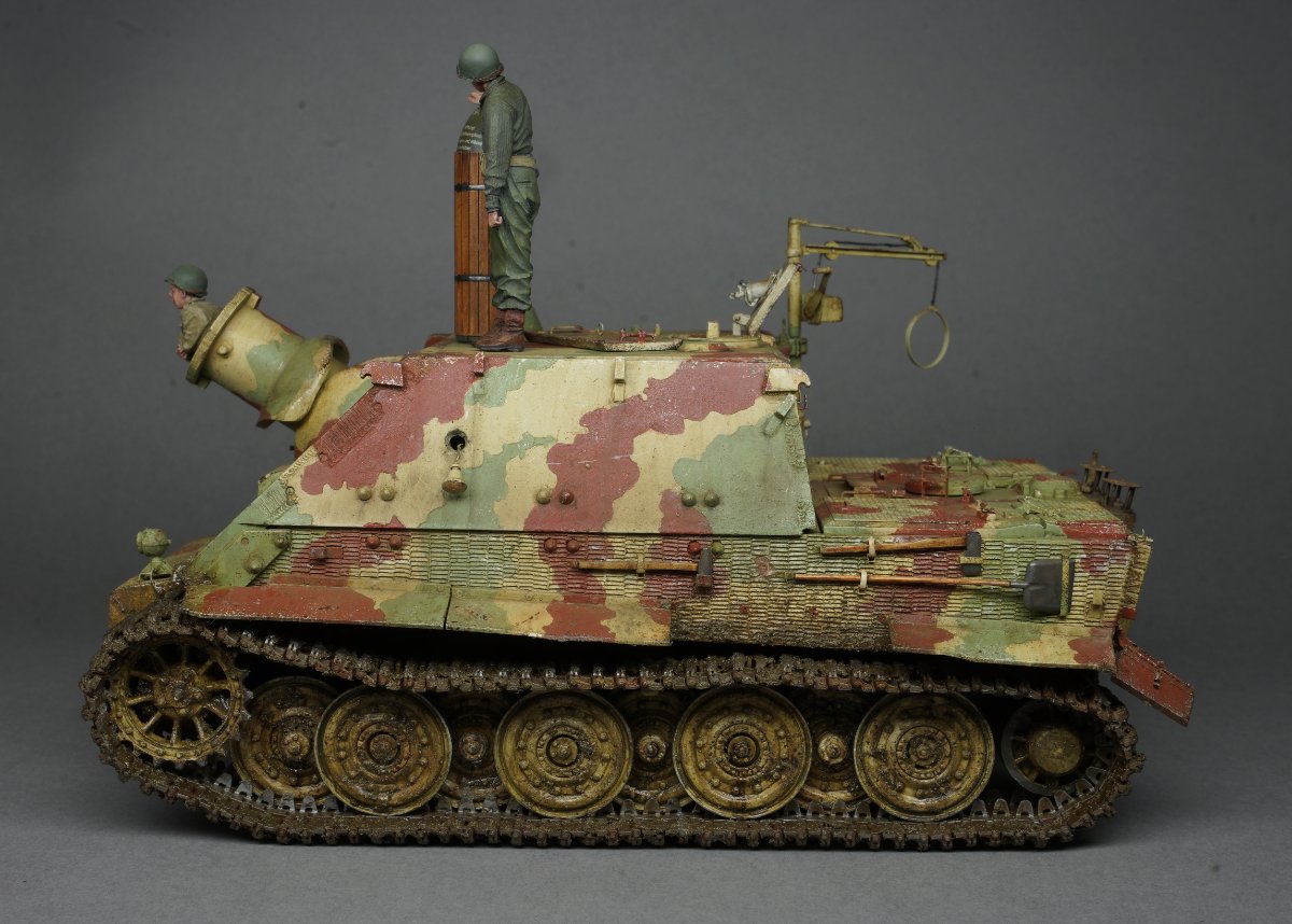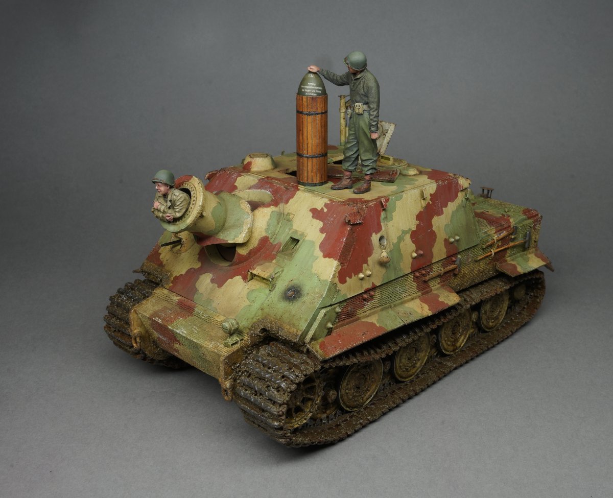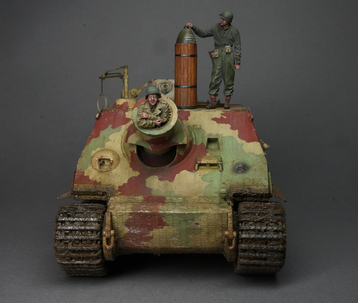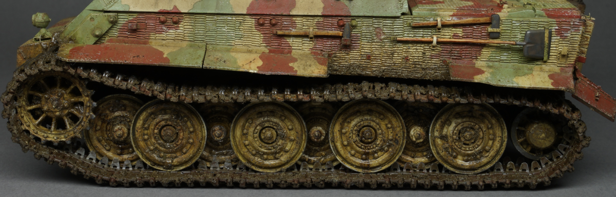 patrykd Napisano Sobota o 22:44 Share Napisano Sobota o 22:44 (edytowane) Po kilku wcześniejszych projektach postanowiłem zmierzyć się z czymś bardziej wymagającym i wybór padł na Sturmtigera w skali 1/35 od Rye Field Model. To zestaw, który od początku przyciąga bogatym wnętrzem i solidnym odwzorowaniem detali, ale też wymaga cierpliwości i dokładności. Model wykonałem w wersji z pełnym wnętrzem, obejmującym zarówno przedział bojowy, jak i silnikowy. Praca nad środkiem była jednym z bardziej satysfakcjonujących etapów – sporo czasu zajęło brudzenie podłóg, dopracowanie detali i wózka z pociskami. Gąsienice zaskoczyły mnie pozytywnie – mimo sporej liczby ogniw montaż był bardzo wygodny. Przy budowie zdecydowałem się na niewielkie poprawki powierzchni, ale faktura stali walcowanej i odlewów w zestawie okazała się na tyle dobra, że pozostawiłem ją praktycznie bez zmian. Nie obyło się oczywiście bez kilku wyzwań montażowych – dopasowanie wnętrza i płyty silnikowej wymagało trochę cierpliwości, ale finalnie wszystko złożyło się poprawnie. Jeśli chodzi o malowanie, zależało mi na realistycznym, ale nie przesadnie „umęczonym” wyglądzie. Sturmtigery brały udział w działaniach bojowych w bardzo ograniczonym zakresie, więc model nie został nadmiernie zużyty. Postawiłem na kamuflaż zgodny z historycznymi przykładami oraz umiarkowany weathering, podkreślający ciężar i charakter pojazdu. Całość uzupełniają drobne dodatki, elementy fototrawione jak i żywiczne figurki e – mam nadzieję – dobrze oddają klimat późnowojennego niemieckiego działa szturmowego. Budowa była czasochłonna (niewieleponad rok), ale bardzo satysfakcjonująca. RFM ponownie potwierdził, że potrafi robić świetne zestawy, a praca nad tym modelem pozwoliła mi dopracować kilka nowych technik malarskich i brudzenia wnętrz. Dziękuję wszystkim, którzy zaglądali do wątku warsztatowego, komentowali i doradzali w trakcie budowy. Mam nadzieję, że efekt końcowy przypadnie Wam do gustu. Zapraszam do komentowania i oceniania. Link do warsztatu Na początek przypomnienie jak wyglądał surowy model po budowie. A tak wyszło finalnie Parę zbliżeń poniżej. Edytowane 23 godziny temu przez patrykd 13 Cytuj Odnośnik do komentarza Udostępnij na innych stronach More sharing options...
