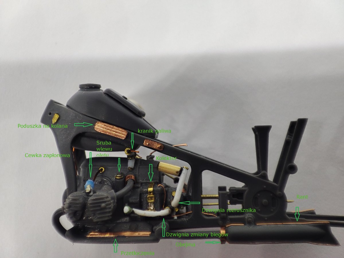 Evildead Napisano 16 Listopada 2025 Share Napisano 16 Listopada 2025 Witam, zachciało się coś nowego porobić:), padło na model Zündapp KS 600 & Sidecar Tamiya, plus dodatki. Motocykl model KS 600 został opracowany w niemieckich zakładach Zündapp Werke G.m.b.H. w Nürnberg. Model wojskowy został opracowany na bazie produkowanej od 1938 roku cywilnej wersji KS 600 i dodatkowo otrzymał w oznaczeniu literę W od Wehrmacht. Produkcję seryjną podjęto w 1939 roku i w 1941 roku przerwano, wyprodukowano około 18 tyś sztuk, po 1941 przerzucono się na wyższy model KS 750. Na razie sobie zacząłem,jeszcze nie wiem czy będzie solo, wyjdzie w praniu ,raczej na pewno będzie Panzergrau, na razie porobiłem stelaże, torby, stelaż na skrzynki amunicyjne. 8 Cytuj Odnośnik do komentarza Udostępnij na innych stronach More sharing options...