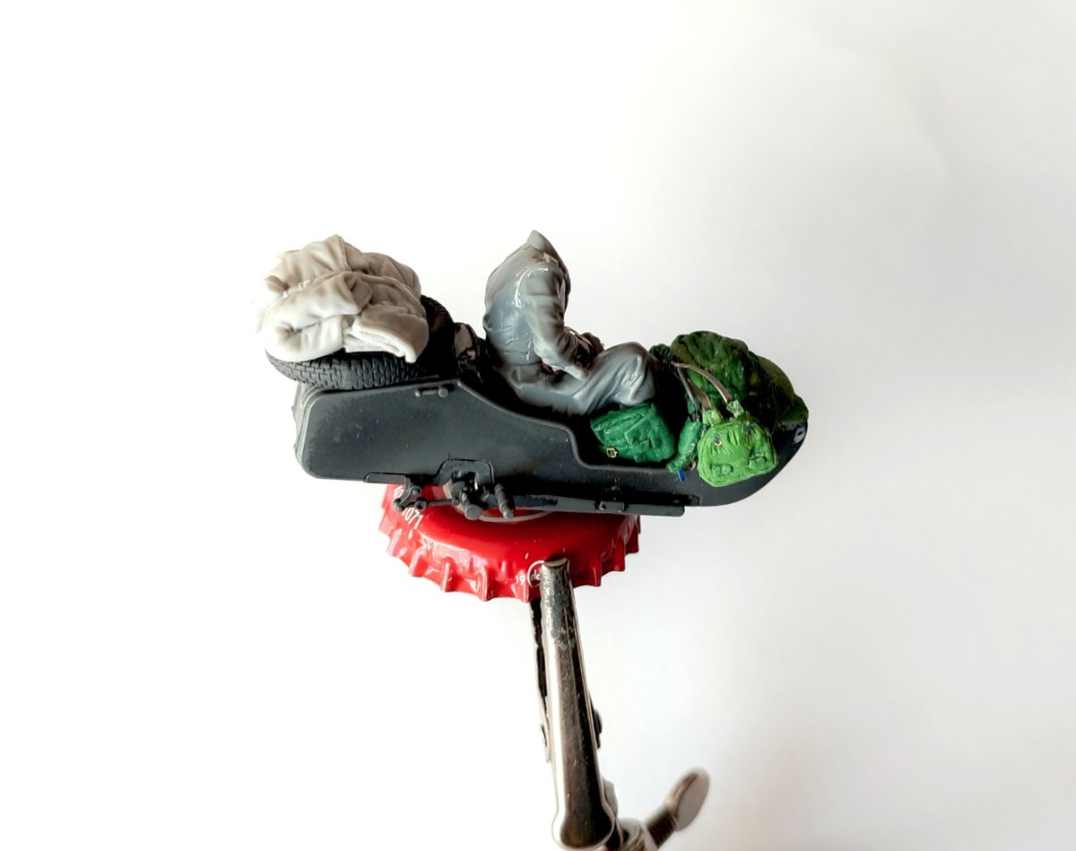 Evildead Napisano 14 Marca Autor Share Napisano 14 Marca Ciąg dalszy.., dorobiłem jakieś koce na przód wózka, jest to mały pojazd, więc musi się coś dziać, zrobiłem chlebak m31 z masy i coś na kształt torby polowej, myślę że nie wyszło strasznie jak na pierwszy raz takiej roboty z masą, figurka na razie wsadzona, tak jak i koło i rzeczy na nim. 4 Cytuj Odnośnik do komentarza Udostępnij na innych stronach More sharing options...