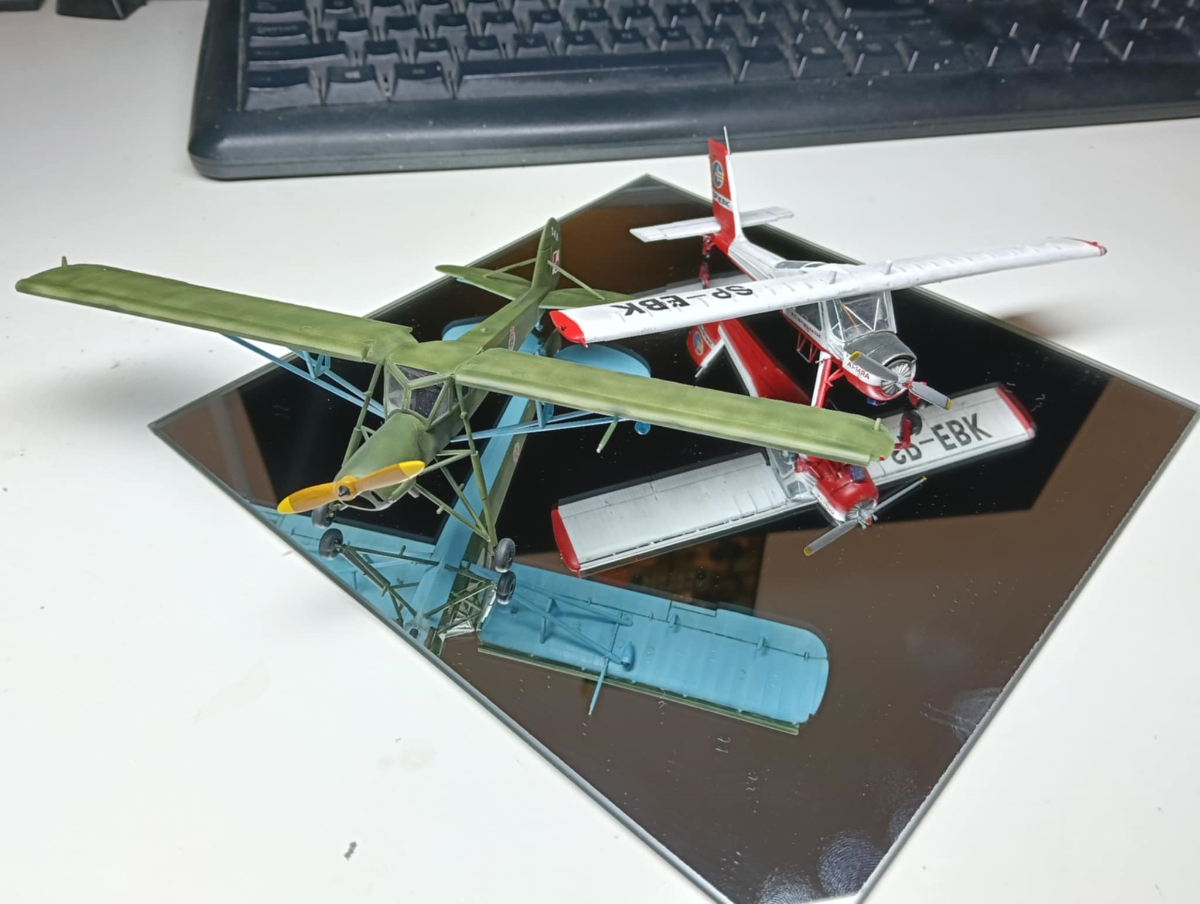 Kiedyś widziałem porównanie oryginałów L-60 Brigadyr i Jak-12A na zdjęciu z Gocławia. Proporcje bardzo podobne jak na Twoim zdjęciu. Storch wąski, ale dość sporawy tak jak L-60. Wilga smukła, a Jak taki skrzynkowy ale gabarytowo podobne. Daktyloskopia dobrze że na lustrze niż na oszkleniu lub kadłubie :lol: Modelik świetny :super: Śmigiełko eleganckie i fajny efekt wypłowiałego zielonego. No i fajnie że wróciłeś :szampan1: