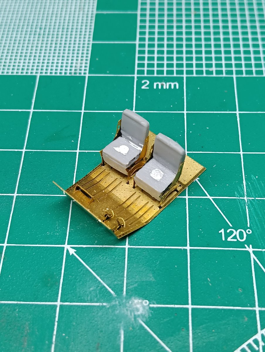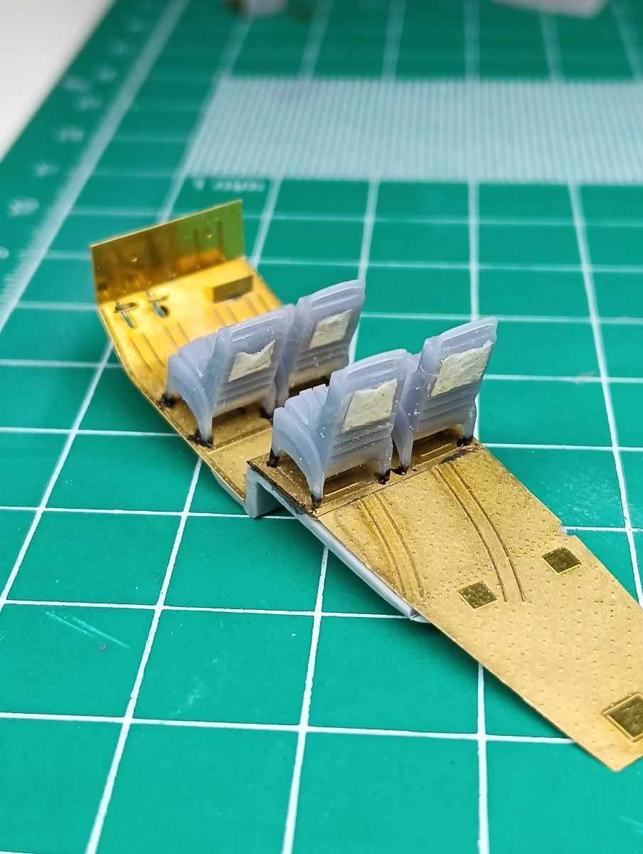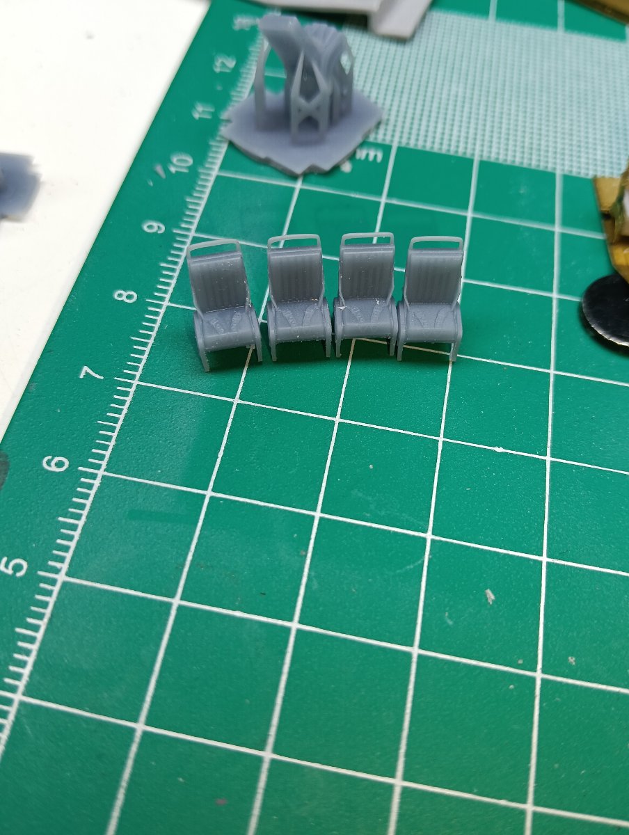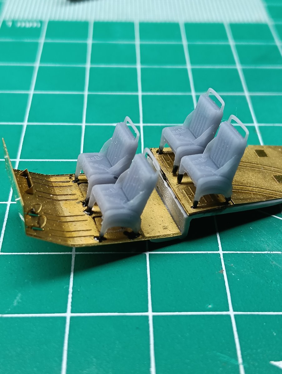 Vieh_san Napisano Czwartek o 19:01 Autor Share Napisano Czwartek o 19:01 Napotkałem taki problem, że w zdjęciach wnętrza sanitarki były 2 rozdzielone tylne fotele, a w zestawie tylko dostępna kanapa. W fototrawionkach też nie ma zestawu dla 4 foteli. Zdecydowałem, że żeby to było na równym poziomie zrobię sobie coś w blenderze w 3D. Wydrukowałem i taki jest wynik. Nie są najlepsze, ale chyba złe też nie. No i przód i tył będzie taki sam. 6 Cytuj Odnośnik do komentarza Udostępnij na innych stronach More sharing options...
