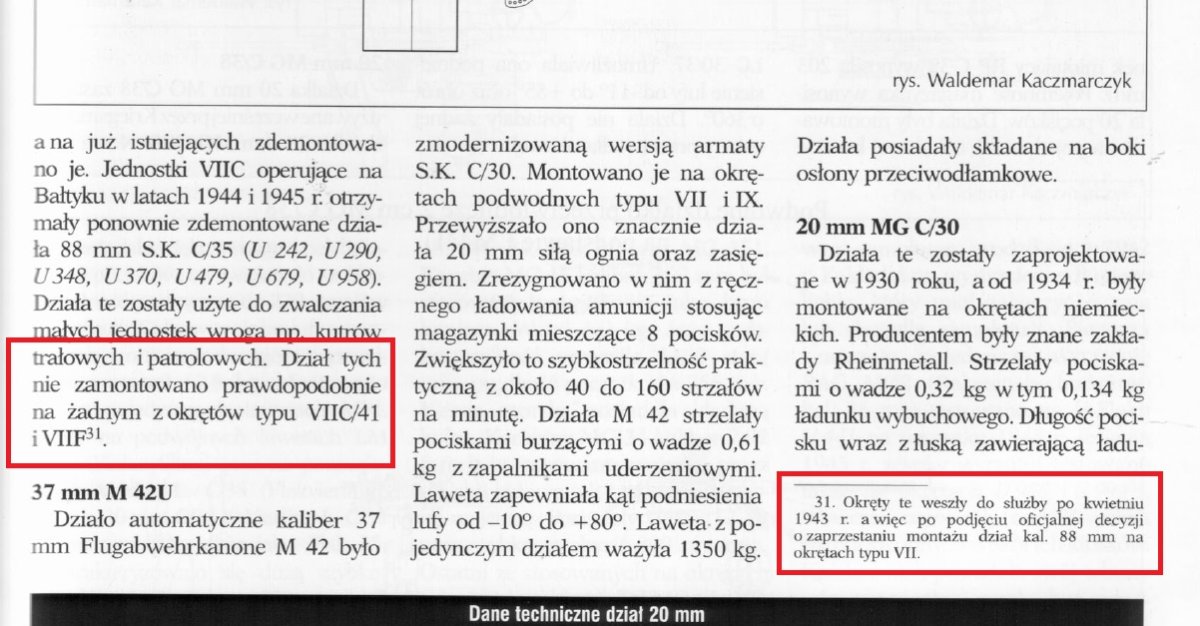 Trochę pogrzebałem i nie znalazłem żadnych informacji, by któryś z nich posiadał SK C/35.  Montowano je na VIIA, VIIB, VIIC. Typ VIIC/41 został fabrycznie pozbawiony armaty, ze względu na panowanie aliantów w powietrzu.