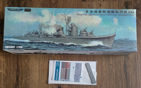 3.Zestaw zawierającego wydany w sierpniu tego roku niszczyciel Akizuki TM35002 oraz waloryzację TM35002UP, oba produkcji słynącej z wysokiej jakości modeli firmy Triumph Model. Model to żywiczny kadłub i wydruki 3D, blachy i elementy toczone - wszystko to jest gwarancją bardzo wysokiego poziomu detalizacji. Cena 380PLN, wysyłka IP 19PLN.