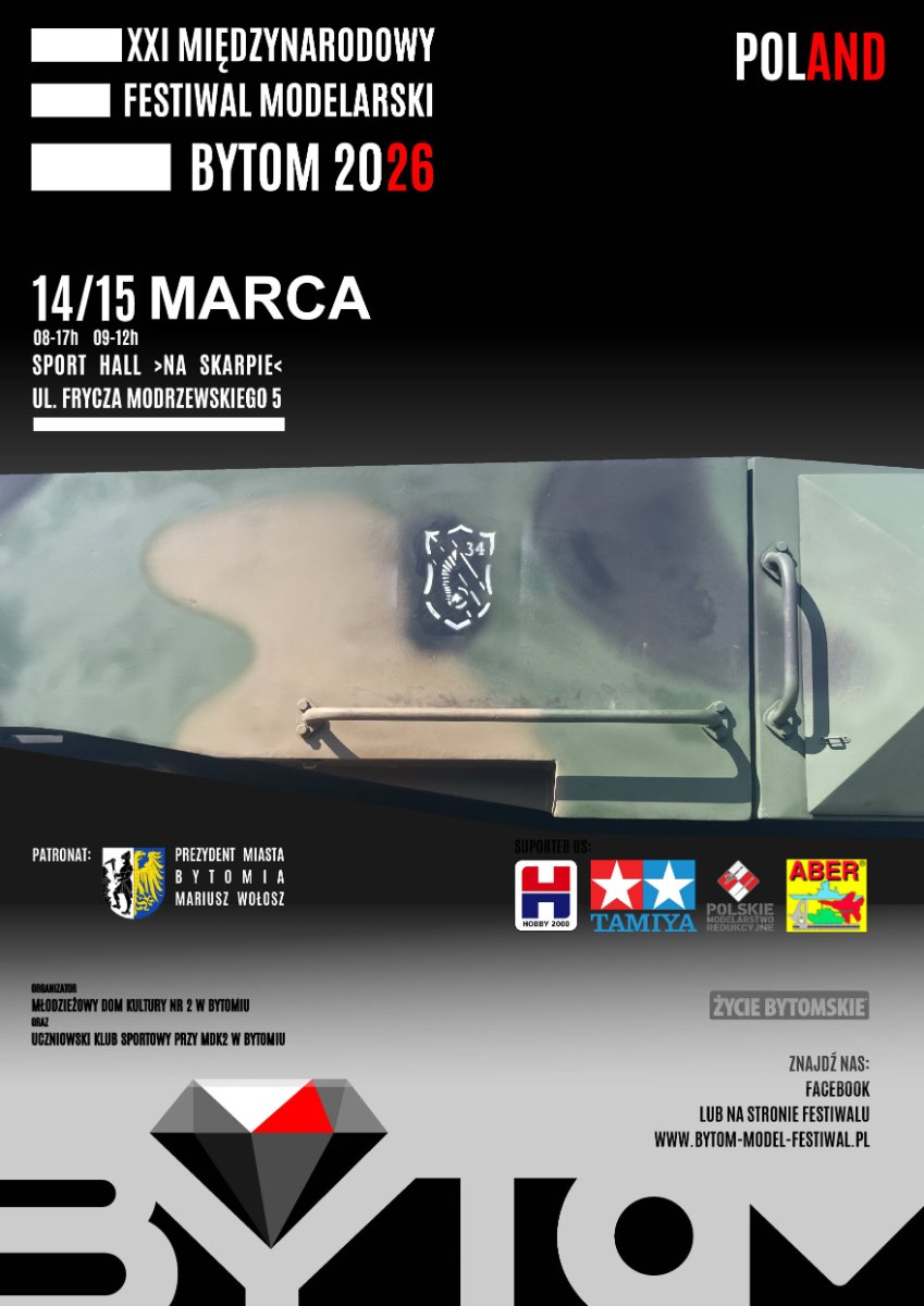 Erni Napisano 15 Stycznia Autor Share Napisano 15 Stycznia (edytowane) KATEGORIE SPECJALNE Z uwagi ze w tym roku przypada 40 rocznica katastrofy w Czarnobylu chcemy zrobić kategorie specjalna w tej tematyce. Ale żeby było ciekawiej dołączymy do tego tez kategorie post-apo i stalker co nierozłącznie wiąże się z tą tematyką. Czernobyl - Kategoria specjalna. 1. Figury i malutkie winietki do średnicy max 10 cm wszystkie skale. 2. Dioramy wszystkie skale Samoloty wojskowe bojowe w barwach polskich 1945-2025 Skala 1/72 Skala 1/48 W każdej kategorii wybierzemy najciekawszy model i nagrodzimy medalem , dyplomem i upominkiem. Modele mogą być dowolnie waloryzowane, ale zalecane jest dołożenie dokumentacji pod model. Kategoria osobna nie jest łączona z kategorią podstawowa. Szanowni festiwalowicze W tym roku odszedł od nas prezes firmy Tamiya pan Shunsaku Tamiya. Wielu z nas zaczynało przygodę z modelarstwem od modeli tej firmy , i dalej lubią budować model z Tamiya. Aby uczcić ta nietuzinkowa postać ,Pana Shunsaku Tamiya na naszym festiwalu rozegrana zostanie też kategoria specjalna z modelami tej marki w tle. Ale żeby było ciekawiej , przypomnijcie sobie swój pierwszy model z tej firmy, jaki zrobiliście i zbudujcie go na nasz konkurs jeszcze raz. Będzie trochę sentymentalnie, ale i ciekawie. Najlepsze modele nagrodzimy nagrodami rzeczowymi w postaci modeli Tamiya. Kategorie: Pojazdy 1/35 Pojazdy 1/48 Okręty 1/700 Okręty 1/350 Samoloty 1/72 Samoloty 1/48 Pojazdy cywilne 1/24 Motocykle 1/12 Pojazdy typu Gun Truck 1914-2025 W skalach 1/72 oraz 1/35 Model może być prezentowany na podstawce terenowej , ale nie może to być diorama. Edytowane 15 Stycznia przez Erni 1 Cytuj Odnośnik do komentarza Udostępnij na innych stronach More sharing options...
