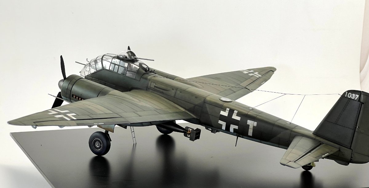 Pięknie zmalowany - imho więcej zyskałeś tym starannym cieniowaniem niż jakże powszechnym obecnie przenitowaniem po całości, subtelnie ubrudzony - można by nieco kopeć wzmocnić bo tu były silniki Jumo - więc diesel,  a wiadomo diesel musi kopcić 😉