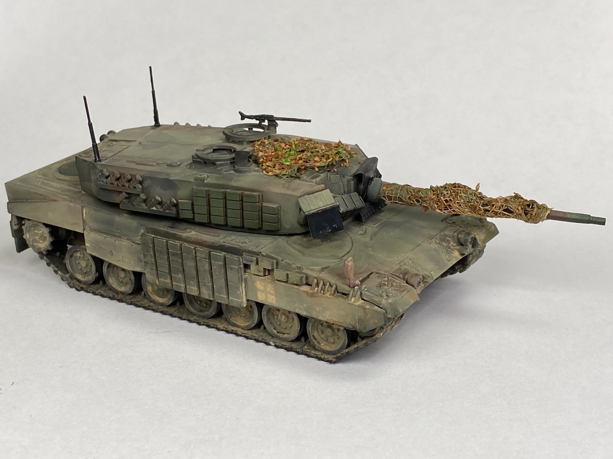 GreGG24 Napisano 15 godzin temu Share Napisano 15 godzin temu Model rodził się w bólach przez cały rok, z uwagi na przeprowadzkę długo pauzowałem. Postępy można prześledzić w wątku warsztatowym, jest tam też bardzo dużo zdjęć referencyjnych. Model to staruteńki Revell, właściwie jeszcze rezultat współpracy z Matchboxem. Dodałem zestaw pancerza reaktywnego Kontakt-1 (a właściwie półtora zestawu) Modelltrans i trochę scratchu. Model malowany farbami Tamiza i postarzany specyfikami AK i MiG. Mam nadzieję, że się spodoba. Nie jest to może model wystawowy, ale w witrynie wygląda dobrze obok T-90A. 1 Cytuj Odnośnik do komentarza Udostępnij na innych stronach More sharing options...