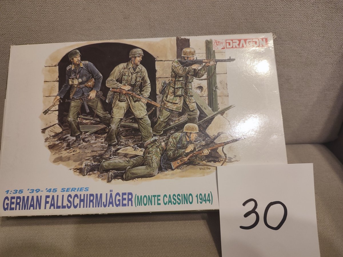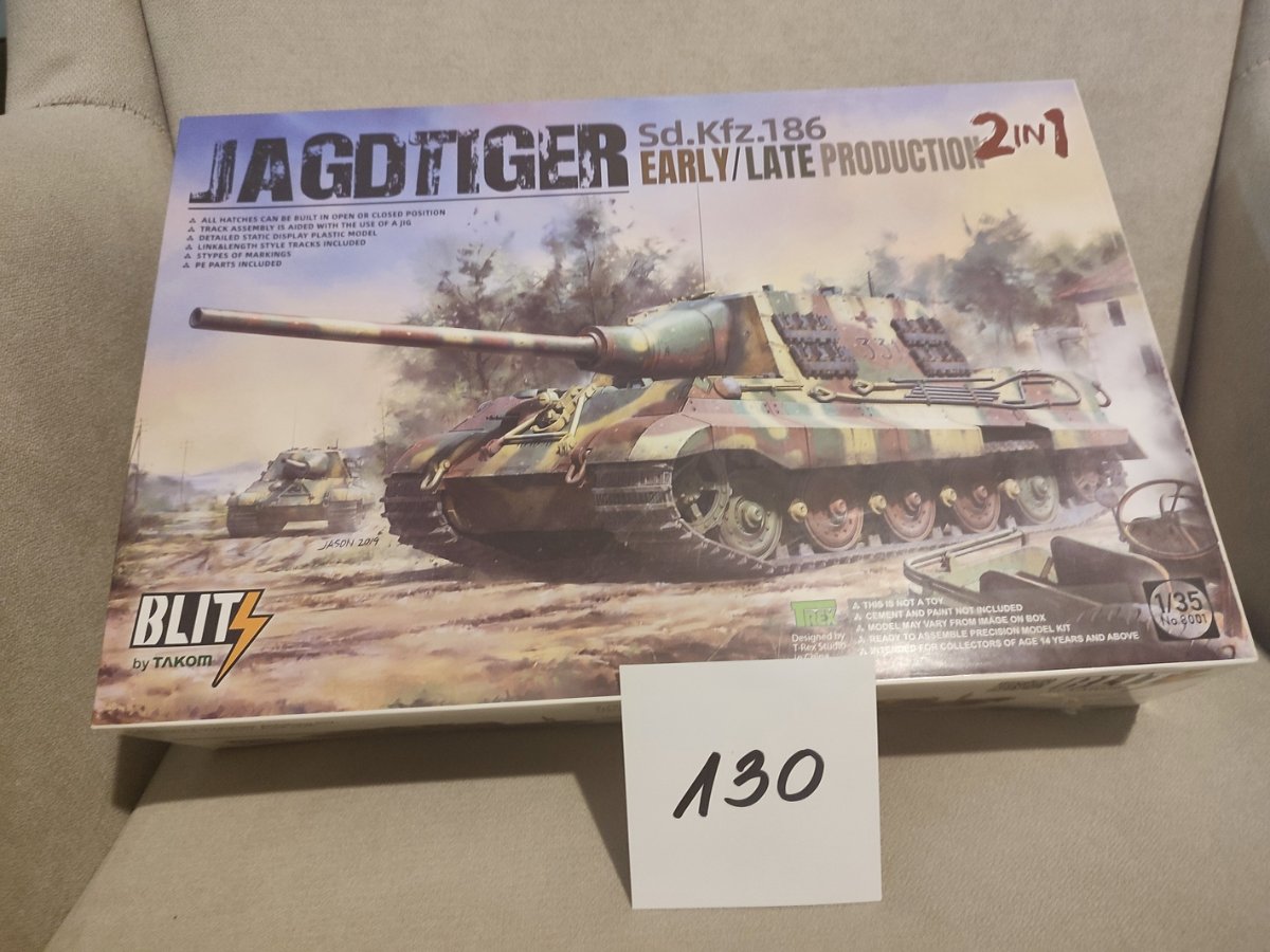 stakov Posted January 10 Share Posted January 10 (edited) W związku z brakiem miejsca na wyeksponowanie modeli jestem zmuszony na zredukowanie swojej kolekcji do pojazdów współczesnych. Modele WWII idą na sprzedaż. Pudełka w różnym stanie, niektóre lekko przygniecione od przechowywania. W razie chęci zakupu pisać we wiadomościach - przy zakupie decyduje zasada kto pierwszy ten lepszy – do ceny modelu należy dodać cenę przesyłki InPost paczkomat (cena przesyłki w zależności od gabarytu. Czołgi, pojazdy 1. Tamiya N0.29 Sd.Kfz. 2 Kleines Kettenkraftrad 1/35 – (w komplecie brakuje żołnierzy, częściowo sklejony) 30 zł 2. Meng Model TS-035 Sd.Kfz.171 PANTHER Ausf. A Late 1/35 140 zł 3. Takom 8001 Jagdtiger Sd.Kfz.186 Early / Late Production, 2 in 1 130 zł 4. Trumpeter 00360 Russian KV-1 model 1942 Lightweight Cast Turret 1/35 80 zł 5. Hobby Boss 84531 Czołg Pz.Kpfw.VI Sd.Kfz.182 Tiger II Henschel 1/35 100 zł 6. Asuka 35-028 British Sherman Ic Firefly Composite Hull with Accessories 1/35 150 zł 7. Zvezda 3689 Soviet Medium Tank T-34/76 1943 UZTM 1/35 80 zł 8. MisterCraft E04 T-60 "Battle of Stalingrad" 1/35 20 zł 9. Zvezda 3535 T-34/76 Soviet tank (1:35) 55 zł 10. MiniArt 35262 Su-76M w/crew Special Edition 120 zł 11. AFV Club 35153 CHURCHILL MK III 1 (1:35) 130 zł 12. Tamiya 35047 German 75mm Anti tank Gun 1/35 15 zł ……………………………….. Figurki 13. Dragon 6514 Monte Cassino Defenders 1944 Fallschirmjager (4 Figures Set) (1:35) 40 zł 14. Dragon 6005 Fallschirmjager Monte Cassino 1944 (1:35) 30 zł 15. Dragon 6129 Survivors Panzer Crew (Kursk 1943) (1:35) 30 zł 16. Dragon 6024 German Sturmpionier (Kursk '43) (1:35) 25 zł 17. MB 3597 Karabin maszynowy Vickers z obsługą - Afryka Północna WWII 50 zł 18. MB 3592 1/35 Battles in Northern Africa Hand-to-hand fight 50 zł …………………………….. Samoloty 19. Monogram 5509, Heinkel he 111 german bomber 1/48 – pudełko sfatygowane 160 zł oderwane parę części ale powinien być kompletny. ……………………………….. Wkrótce inne modele z WWII Edited January 11 by stakov Link to comment Share on other sites More sharing options...