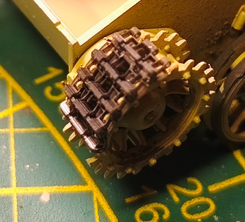 A działam nader spokojnie, biorąc pod uwagę jak HobbyBoss spiertolił gąsienice i ta wielkość haków, które serio powinny być moim zdaniem z plastyku. Swoją drogą chyba jest klątwa tych gąsienic 🤣🤣 kolega wyśle je dopiero dziś w piątek 13, bo drukarka mu zaczęła nawalać