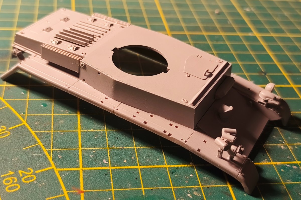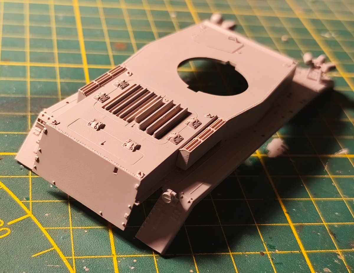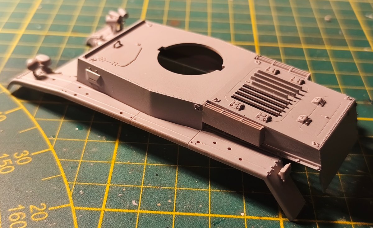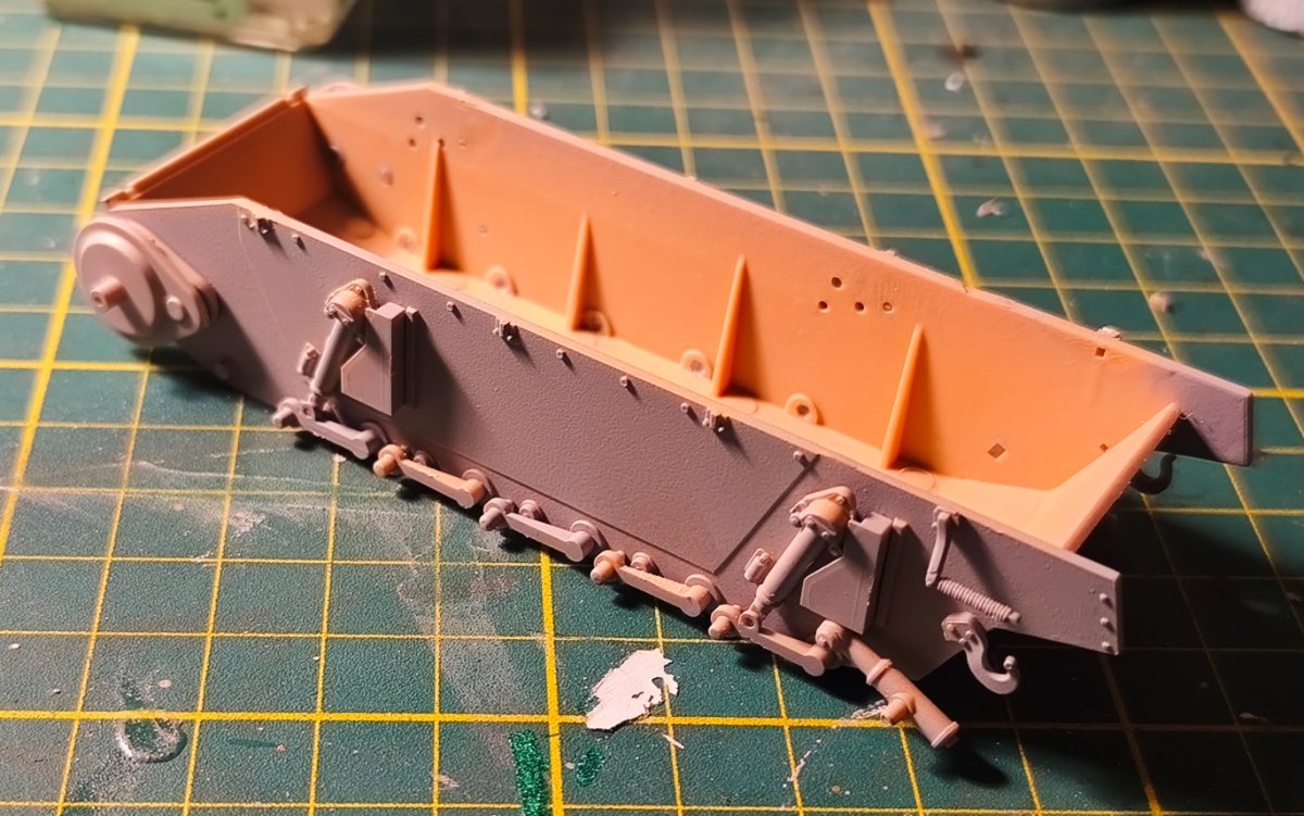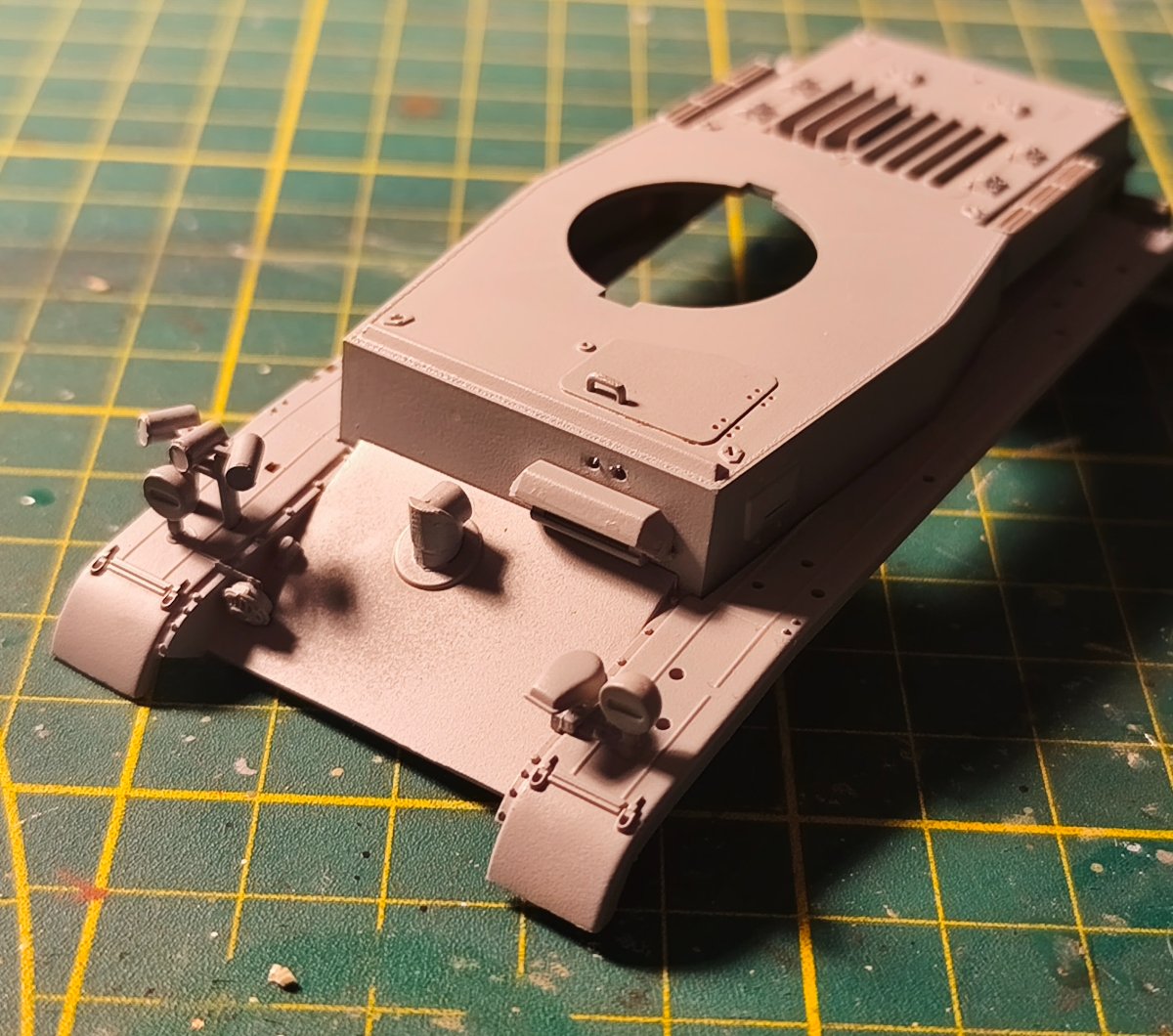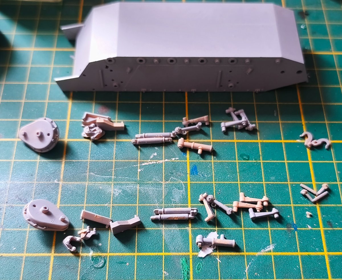 nowicjusz2001 Napisano 6 godzin temu Autor Share Napisano 6 godzin temu Układ jezdny dostał podkład, który schnie dobę. Może jeszcze go poprawię. W tak zwanym międzyczasie zająłem się górą. Nie tykam haków z elementów PE. Te dokleje dopiero po zamontowaniu dołu z górą. Teraz najwięcej pracy było przy klaksonie(?) to połączenie plastyku i PE. Cytuj Odnośnik do komentarza Udostępnij na innych stronach More sharing options...