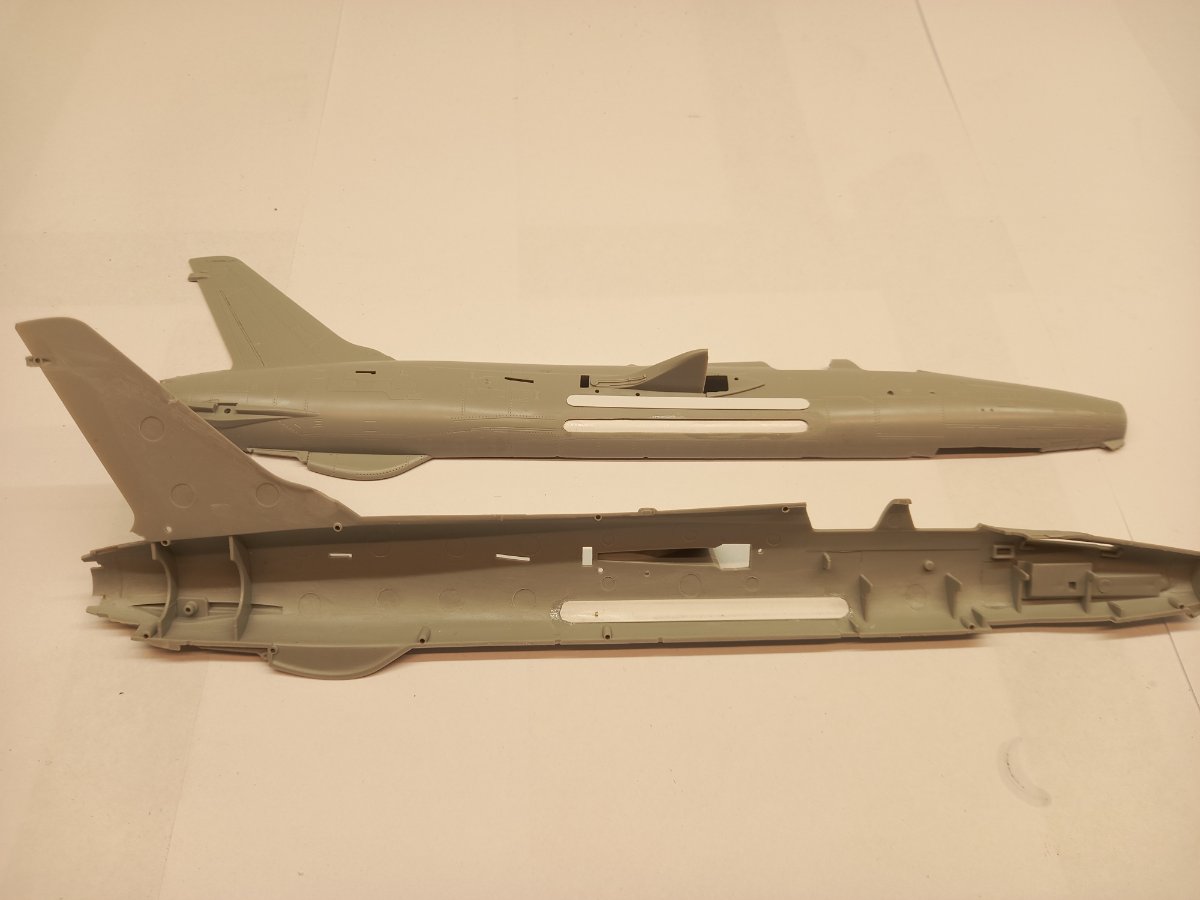 jacmin Napisano 2 Lutego Share Napisano 2 Lutego Witam wszystkich! jako kolejny projekt rozpoczynam budowę modelu samolotu F-105F o sygnale wywoławczym Firebird 5, biorącego udział w osłonie słynnego Rajdu na Son Tay. Zacznijmy od tego czym był sam rajd. Była to operacja sił specjalnych USA przeprowadzona w północnym Wietnamie w nocy z 20 na 21 listopada 1970 roku. Celem była próba uwolnienia amerykańskich jeńców wojennych przetrzymywanych w obozie „Camp Faith”. Choć w obozie nie było już więźniów (przeniesionych kilka miesięcy wcześniej), operacja pozostaje wzorcowym przykładem precyzyjnie zaplanowanej misji specjalnej, z zaskoczeniem, koordynacją środków i minimalnymi stratami ( zainteresowanych odsyłam do lektury wspaniałej książki Terry Bucklera i Clifforda Westbrocka "Who will go..."). Zespół uderzeniowy składał się z 5 helikopterów HH-53C o sygnałach wywoławczych Apple 1-5 i 1 helikoptera HH-3E o sygnale wywoławczym Banana 1. Jednak to był tzw wierzchołek góry lodowej. W rzeczywistości akcję wspierała dobrze ponad setka innych maszyn jak tankowce, samoloty walki elektronicznej, samoloty Mig-CAP, bombowce i "Dzikie Łasice" w tym nasz tytułowy Firebird 5. Cóż to takiego te Dzikie Łasice. Były to dwumiejscowe odrzutowce, początkowo F-100, potem F-105, F4 i A6, mające za zadanie zwalczanie wietnamskiej rakietowej obrony przeciwlotniczej. Dysponowały elektroniką mogącą namierzać stacje radarowe (kierujące pociskami SAM) oraz rakiety antyradiacyne do ich zwalczania. Rakiety ziemia powietrze były istnym utrapieniem amerykanów i siały spustoszenie wśród samolotów udających się nad Wietnam Północny. Dzikie Łasice miały strasznie niewdzięczne zadanie. Chwilę przed planowanym przelotem sił uderzeniowych wlatywały w rejon wietnamskiej obrony powietrznej i prowokowały do uaktywnienia radarów i odpalenia pocisków. Następnie namierzały i likwidowały stacje radarowe i same stanowiska rakiet. Wszystko to jednocześnie walcząc o życie, próbując wymanewrować odpalone rakiety. Wielu z nich zginęło w ten sposób, ale taktyka była na tyle skuteczna, że donoszono o przypadkach, gdy Wietnamczycy po zorientowaniu się kto ich atakuje, wyłączali radary i odpalali pociski "na oślep". Ale wróćmy do naszego Firebird 5. Był to dwumiejscowy F-105 w wersji F o numerze 63-4463. Wiele źródeł błędnie podaje, że była to wersja G, ale potwierdziłem u pułkownika Lowry że był to F-105F wypożyczony z bazy na Okinawie. Tego pamiętnego dnia, 21 listopada 1970r jego załogę stanowili pilot major Donald Kilgus oraz WSO, wtedy kapitan Ted Lowry. Z misją wsparcia tego dnia poleciało 5 Dzikich Łasic. Firebird 5 był maszyną zapasową, której zadaniem było zastąpienie pierwszej zestrzelonej Łasicy. W kilka minut po przylocie w rejon celu uaktywniła się obrona przeciwlotnicza i w niebo poszły pierwsze rakiety. Jedna z nich eksplodowała w pobliżu Firebird 3 lekko uszkadzając maszynę. Mogła dalej lecieć, ale pilot meldował wibracje silnika i musieli opuścić rejon działań. Do akcji musiał więc wkroczyć Firebird 5. Wymanewrował 3 kolejne rakiety, w międzyczasie odpalając jednego AGM 45 Shrike. Niestety czwarta odpalona rakieta SAM eksplodowała 100m od samolotu Kilgusa i Lowry. Odłamki głowicy uderzyły w grzbiet kadłuba za drugą kabiną. Pomimo uszkodzeń samolot wydawał się stabilny, więc pilot podjął decyzję o pozostaniu i kontynuowaniu misji do czasu aż odpalili ostatniego Shrika. Po otrzymaniu sygnału od Firebird 1 o wycofaniu się z rejonu działań, pilot i EWO podsumowali swoją sytuację. Gubili duże ilości paliwa (uszkodzeniu uległ zbiornik grzbietowy), uszkodzeniu uległ również zbiornik hydrauliki. Nie mieli wystarczającej ilości paliwa, żeby wrócić. Skierowali się zatem nad punkt nad Laosem wyznaczony jako miejsce bezpiecznego katapultowania. Pomimo tego, że w ich kierunku skierowano cysternę, na kilka minut przed spotkaniem silnik Firebirda 5 zgasł z braku paliwa. Major Kilgus i kapitan Lowry katapultowali się i bezpiecznie wylądowali. Następnego dnia zostali podniesieni z ziemi przez helikoptery HH-53C Apple 4 i Apple5, które wracając z misji zawróciły by podjąć rozbitków. To tyle tytułem tła historycznego. A co mamy do dyspozycji na modelarskim rynku? Niestety niewiele, w zasadzie jedynie F-105G Trumpetera. Czemu niestety? Z 2 powodów. Po pierwsze, model posiada błąd w kształcie ogona. Kadłub jest wprawdzie z wersji G ale stabilizator pionowy pochodzi ewidentnie z wersji D! Drugi powód to właśnie ta wersja G. Różniła się od wersji F zasobnikami w kształcie podłużnych zgrubień na spodzie kadłuba, mieszczącymi elektronikę. Reszta w zasadzie była identyczna jak w wersji F, więc model po drobnych przeróbkach nadaje się do budowy Firebirda 5. Zakupiłem również kilka dodatków: - Res Kit F-105G Thunderchief vertical stabilizer - Res Kit Centerline 650 gal. fuel tank - Res Kit F-105 Thunderchief 450. gal wing fuel tanks with pylons - Res kit AGM 45 Shrike - LP Models F-105G ladders - Aires F-105D Thunderchief cockpit set - Eduard F-105D interior - Armory F-105 wheels - Wolfpack F-105G seats - Master Models M61 A1 Vulcan Zamówiłem jeszcze kilka rzeczy, ale dotrą pod koniec lutego. 11 Cytuj Odnośnik do komentarza Udostępnij na innych stronach More sharing options...