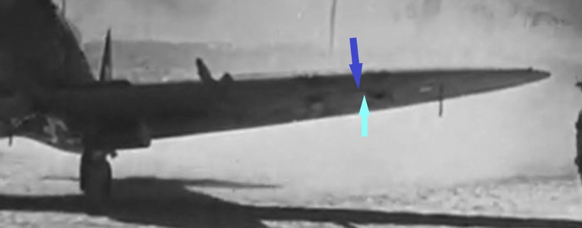 Gdy pojawił się temat kokard i powiększenie Sorisa zacząłem się zastanawiać.  To nie może być lampa, bo miejsce nie to i koliduje z pokrywą uzbrojenia. Lampę można dostrzec nieco dalej w kierunku końcówki skrzydła jako delikatne, punktowe niemal rozjaśnienie. To nie może być kokarda, bo perspektywa się nie zgadza (dla lampy zresztą też) i ewentualną kokardę widać obok. To nie może być odbicie czupryny mechanika , bo skrzydło musiałoby być niemal lustrzane dla takiego efektu.  Rozważywszy wszystko uznałem, że to jakieś uszkodzenie filmu.