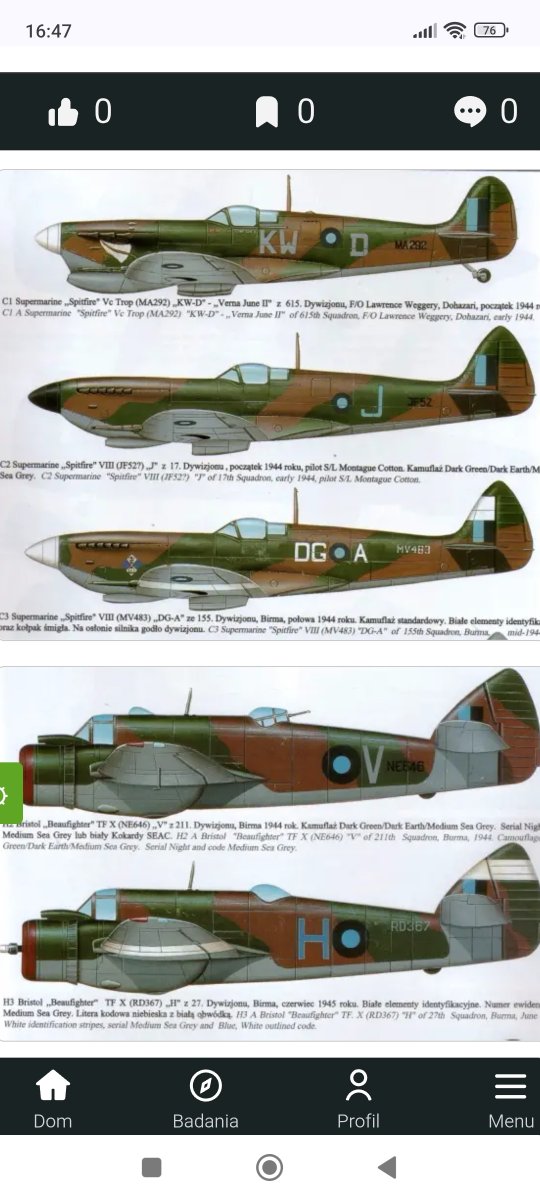 Oczywiście każdy ma swoje zdanie przy interpretacji zdjęć. Szanuję każde podejście. Chciałbym jedynie zwrócić uwagę, że kamuflaż SEAC był malowany w fabrykach. Poniżej wrzucam fragment książki dotyczącej samolotów RAAF. Oczywiście zdaję sobie sprawę, że australijskie Spitfire’y to inna kwestia, ale wspominane w tekście numery seryjne A58-300 do 550 odpowiadają tym z zakresu JF–JG. Były to samoloty z tej samej partii produkcyjnej.