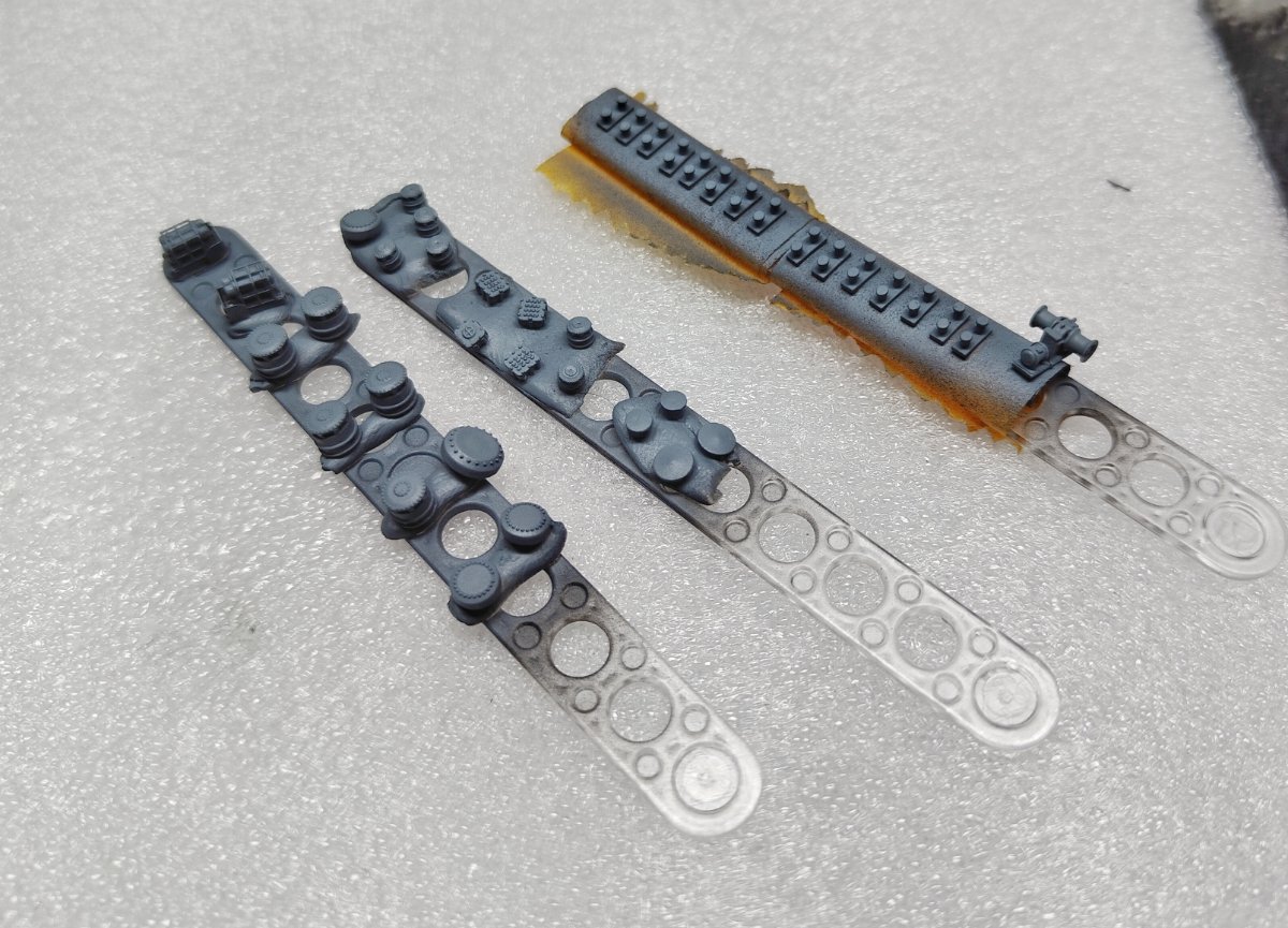 PabloA Napisano 13 Kwietnia Autor Share Napisano 13 Kwietnia 12 minut temu, donalyah00 napisał: Wygląda to bardzo, bardzo dobrze z jednym ale - śruby mu się świecą jak jajca psu. Może warto byłoby rozważyć ich stonowanie - jakaś zielonawa patyna mosiądzu plus odrobinę białawego nalotu? Nie wiem też czy wały śrub nie powinny być również w kolorze części dennej oraz również spatynowane. Pozdrawiam, Marek Co do wałów to na instrukcji były czarne ale przeleciałem je trochę gunmetalem i chyba tak zostawię. Co do śrub to masz rację, trzeba je jeszcze dopracować 2 minuty temu, Szydercza Gała napisał: Jak Marek pisze, wały w kolorze dna, śruby oczywiście odwrotnie Tak bez glona zadnego??? Bez scumline'a??? BUUUUUUUUU!!! Faktycznie zapomniałem o glonach się zrobi Cytuj Odnośnik do komentarza Udostępnij na innych stronach More sharing options...