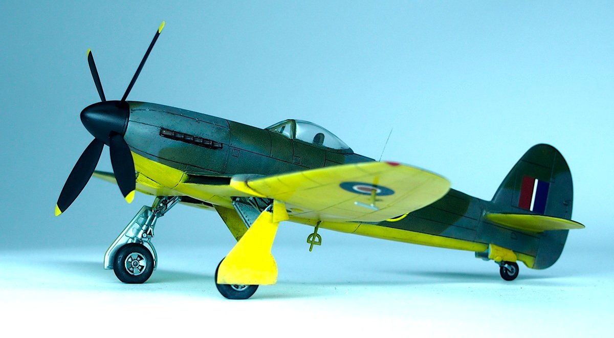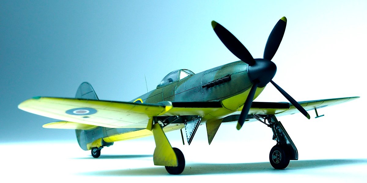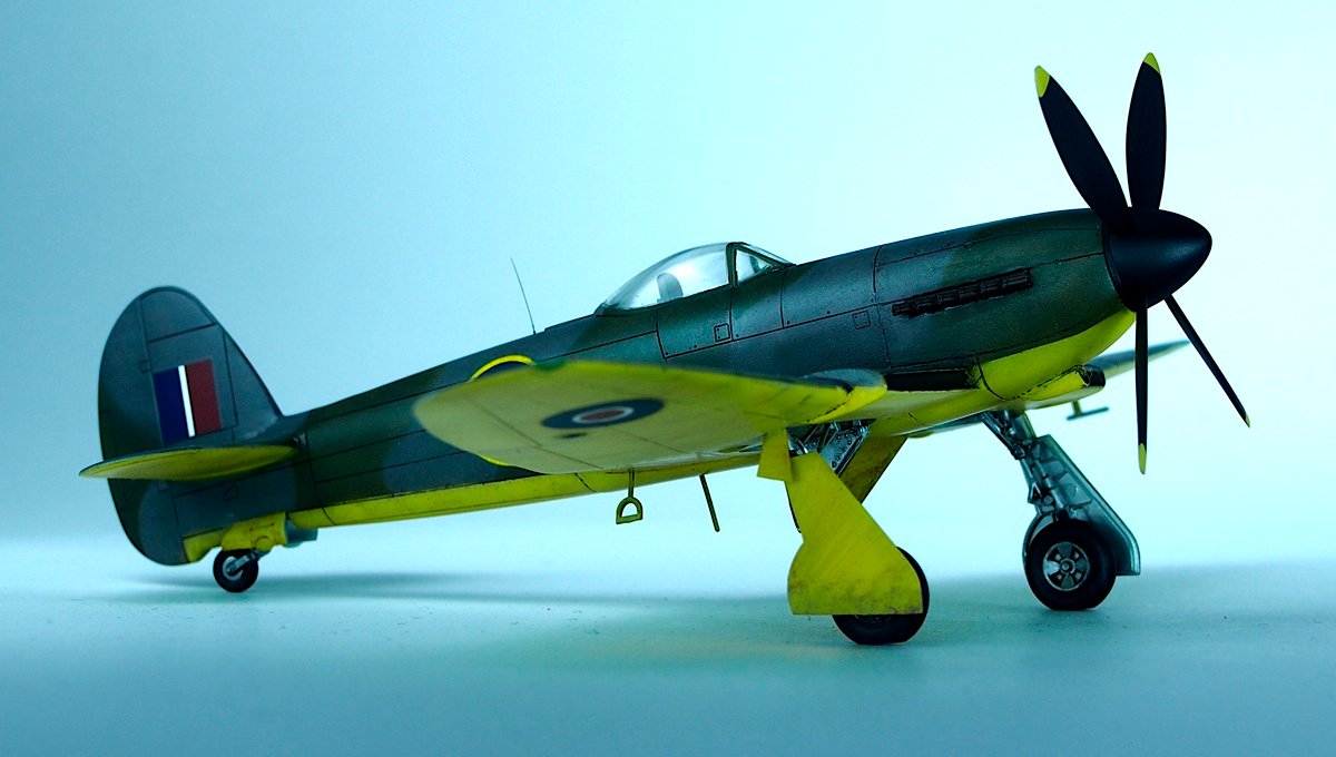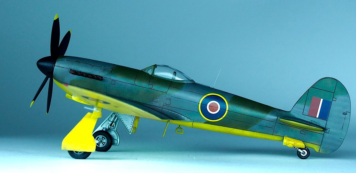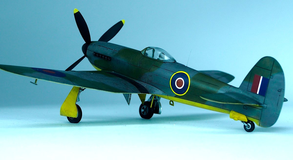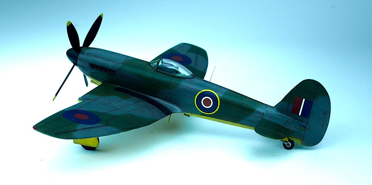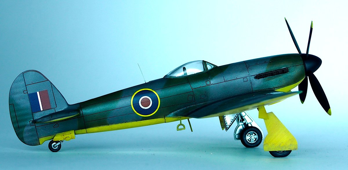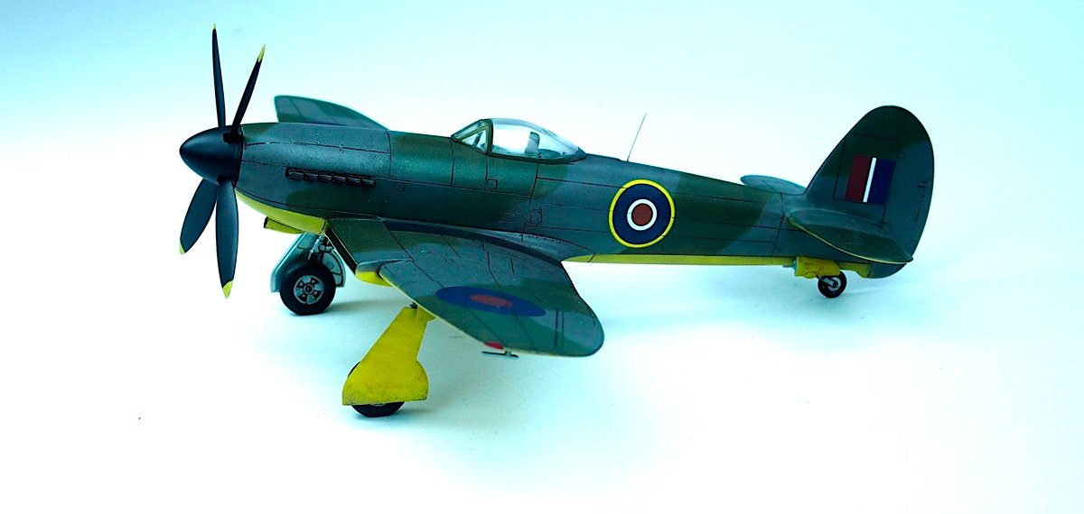 obłok Napisano 3 godziny temu Share Napisano 3 godziny temu (edytowane) Hawker Tempest Mk. I, baza Langley, Parlaunt Park (Slough), luty 1943 r. Konstruktor wytwórni Hawker Aircraft Limited inż. Sydney Camm po wprowadzeniu do produkcji seryjnej samolotu Hawker Typhoon, już od marca 1940 r. podjął dalsze prace konstrukcyjne nad tym samolotem, zwłaszcza nad poprawą jego osiągów i właściwości na dużych wysokościach. Ponieważ główną przyczyną problemów w Typhoonie był wąski i długi płat, wśród studiów pojawił się projekt nowego – o cieńszym profilu i obrysie eliptycznym, ale o profilu laminarnym. Skrzydło było też szersze, a chłodnicę dla silnika Sabre IV postanowiono zamontować w krawędzi natarcia płata od strony kadłuba, likwidując tym samym charakterystyczną „brodę” z Typhoona mieszczącą tę chłodnicę. Poprawiło to też aerodynamikę i opór stawiany przez chłodnicę o ok. 2/3 oraz wymusiło przeniesienie stąd zbiorników paliwa do przedniej krawędzi skrzydła bardziej na zewnątrz. Jednocześnie zbiorniki uległy zmniejszeniu, ponieważ płat był cieńszy niż w Typhoonie; wydłużono więc o 53 cm kadłub, przesuwając silnik do przodu, i przed kabiną umieszczono kolejny zbiornik paliwa, aby nie uległ zmniejszeniu zasięg samolotu. Zastosowano też inny kształt płetwy grzbietowej i wydłużono ogon samolotu. Nowy, cieńszy płat wymagał również przeprojektowania podwozia głównego. Projekt był gotowy w październiku 1941 roku. Miesiąc później Ministerstwo Lotnictwa wydało specyfikację F10/41 i zamówiło 2 prototypy. Projekt początkowo oznaczono jako Typhoon Mark II, ale w dniu 28 lutego 1942 roku zmieniono nazwę samolotu i jako nowa konstrukcja otrzymał nazwę Hawker Tempest. Jeszcze w sierpniu 1942 roku Ministerstwo lotnictwa zamówiło 400 sztuk Tempestów z silnikiem Sabre IV, ale rozwój tego silnika napotykał problemy. Pierwszy prototyp z nim oblatano dopiero 24 lutego 1943, oznaczony jako Hawker Tempest Mk I (opóźnienie nastąpiło głównie ze względu na problemy z dopracowaniem chłodnic w krawędziach natarcia skrzydła). Również on miał początkowo osłonę kabiny i ogon identyczne jak w Typhoonie. Model ten podczas prób osiągnął prędkość maksymalną 746 km/h na wysokości 7500 m. Okazało się jednocześnie, że redukcja „brody” z chłodnicami nie wpłynęła na istotną poprawę osiągów i w pozostałych wersjach zrezygnowano z tego rozwiązania. Ponieważ silnik Sabre IV był nadal niedopracowany, nie zbudowano już kolejnego egzemplarza wersji Mk I, a do produkcji seryjnej skierowano Mk V z silnikiem Sabre II. Edytowane 3 godziny temu przez obłok 1 Cytuj Odnośnik do komentarza Udostępnij na innych stronach More sharing options...