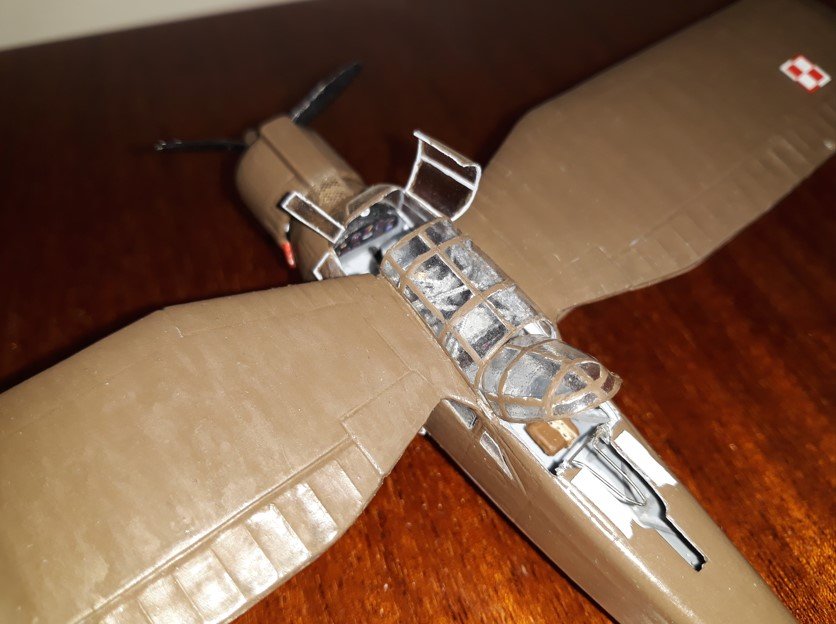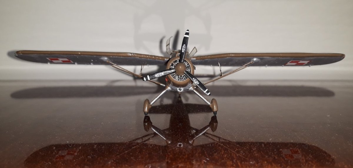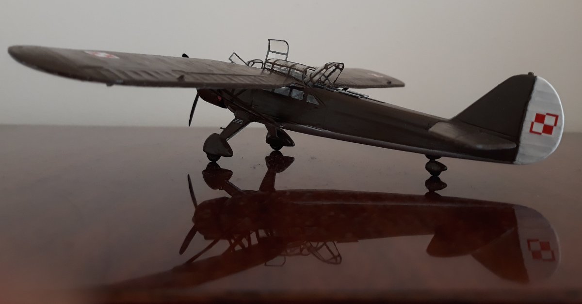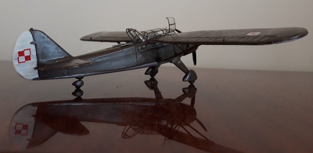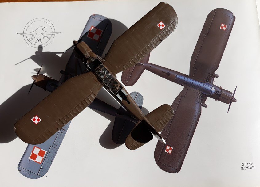 LWS-3 Mewa drugi prototyp. Model płatowca z Broplanu, a GR-14 z Ardpolu. Kalki Broplan, Techmod, Mr Decal. Model przerabiany wg. planów z monografii A. Glassa z Militariów z 1996 r. i wskazówek Wojciecha Mazura  z WLU z 2014 r. Sam model pierwotnie (czyli ok. 1992/3 r.) zapewne powstał wg rysunków E.Gajkowski, S. Jurkiewicz "Samoloty września 1939" z 1975 r. (trzeba mu było stąd trochę wydłużyć kadłub między kabiną a silnikiem. Model już ma parę lat (choć już uwzględnia ustalenia M. Rogusza co do srebrnego spodu płatów), ale  zarówno Mewa to jeden z moich ulubionych samolotów, jak i Broplan to mój ulubiony producent modeli.