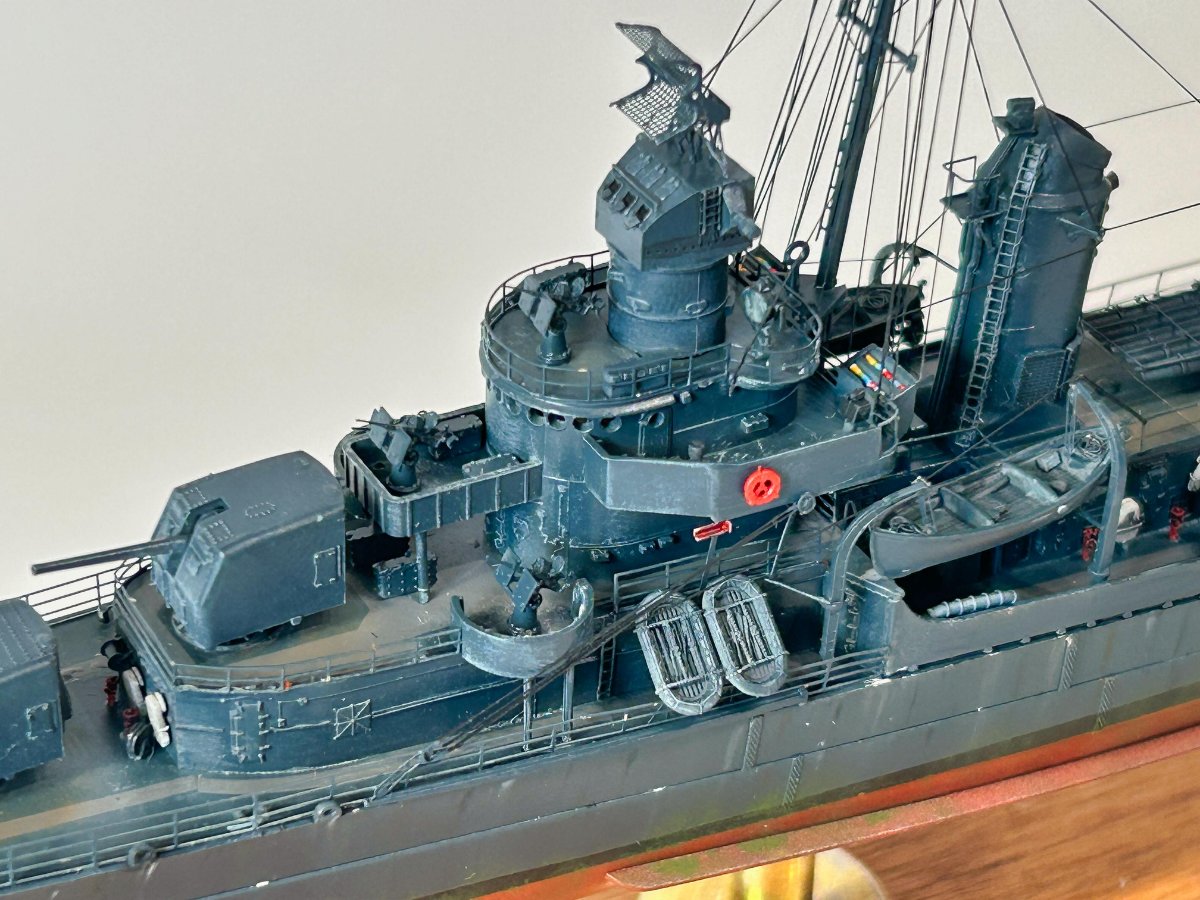 tojarro Napisano 12 godzin temu Share Napisano 12 godzin temu (edytowane) Jako, że to prawie nowość postanowiłem podzielić się kilkoma zdjęciami gotowego modelu. Zestaw to typowy Trumpeter choć jest oznakowany jako I LOVE KIT. Nie jest to stary USS Sulivans ale jakość detali jest nie równa. Jedne, jak artyleria główna prezentują się ciekawie, drugie, jak 40 mm Boffors - na odwrót. Model buduje się dobrze choć instrukcja nie jest dokładna, system montażu drobnych elementów niezbyt udany a tablica barwna wymaga korekty. Pierwszy z problemów na jaki musiałem rozwiązać to malowanie. Publikacja z serii Super Drawings in 3D ma niewłaściwe malowanie co niejako potwierdził autor rysunków w korespondencji prywatnej. Po zagłębieniu tematu oraz pomocy naszego forum do malowania pokładu oraz kadłuba stworzyłem miksturki z farb Mr Hobby. kingfisher Dzięki. W modelu wymieniłem artylerię lekką: 40 mm to zestaw FiveStars, 20 mm to HS Models, tratwy i mocowania: zestaw Eduarda + Fivestars, wymieniłem nieciekawe lufy artylerii głównej na te od Mastera. Celownik MK51 to Heavy Hobby a węże i pompy strażackie oraz koła ratunkowe to zestaw HS Models. Bardzo pomocny i nieoceniony jest dołączony zestaw fototrawiony. Trochę szkoda, że relingi główne nie są spersonalizowane pod okręt a uniwersalne. Do tego trochę drucików, linek i gotowe. Kiedyś - przy okazji muszę ogarnąć wymianę Kingfishera - ten w zestawie jest koszmarny. Edytowane 10 godzin temu przez tojarro 6 Cytuj Odnośnik do komentarza Udostępnij na innych stronach More sharing options...
