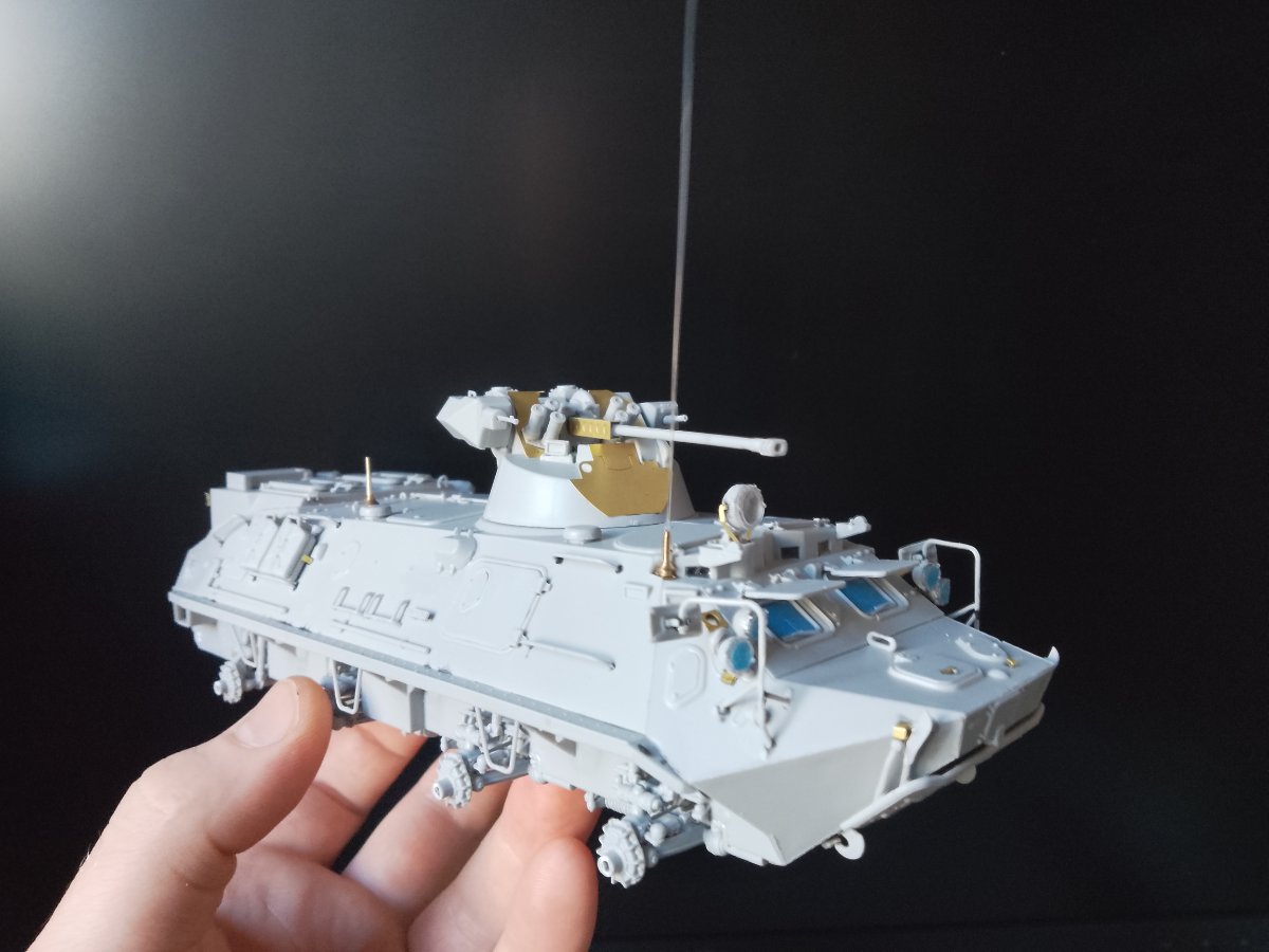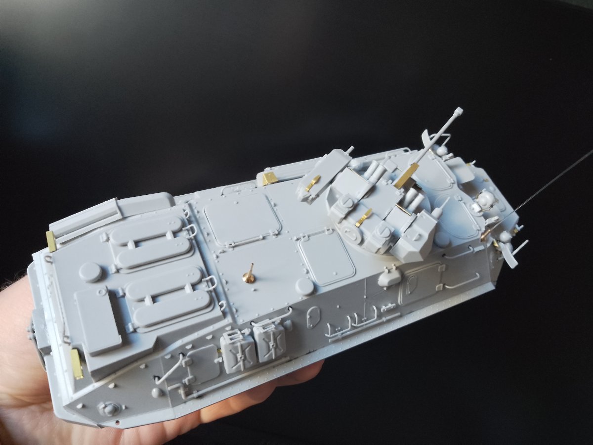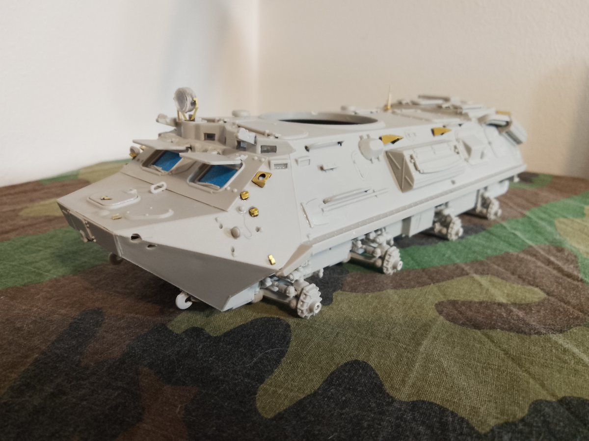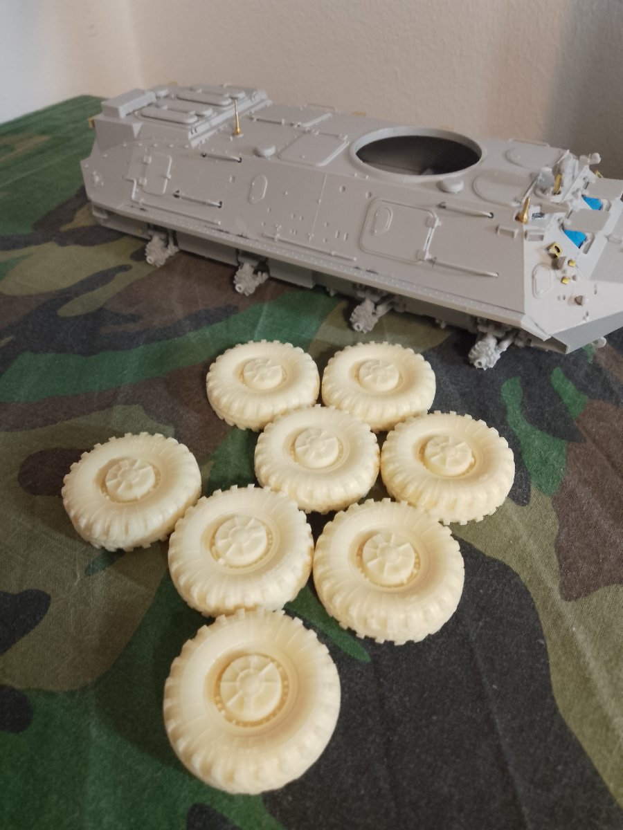 SnajperTBG Napisano Poniedziałek o 19:36 Share Napisano Poniedziałek o 19:36 Jakoś mnie naszło na wschodnie wynalazki No to wjechał na warsztat nietypowy model a mianowicie BTR 60pb po ruskim upgreidzie Model przyjemny w budowie. Celowo pominąłem budowę środka której i tak nie widać. Do modelu dodałem podstawy anten od RB model oraz Abera. Poszły w ruch również żywiczne koła gdyż zestawowe są takie sobie. Zostało zrobić wieże i dać kilka pierdół na pancerz i czekam na wiosnę co by zacząć malunki. 4 Cytuj Odnośnik do komentarza Udostępnij na innych stronach More sharing options...