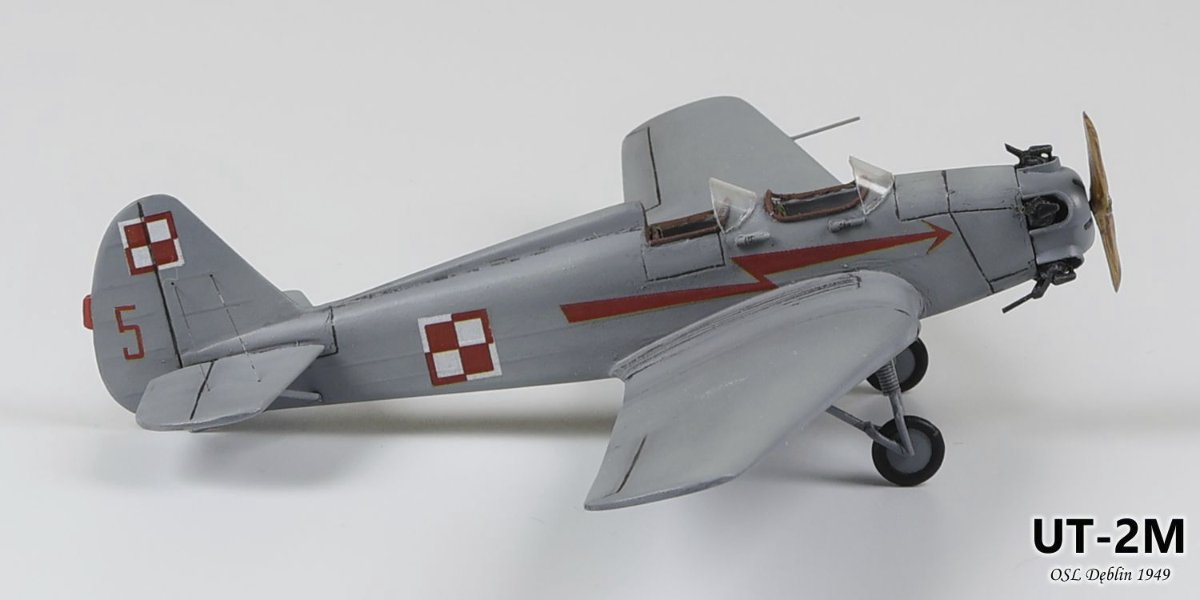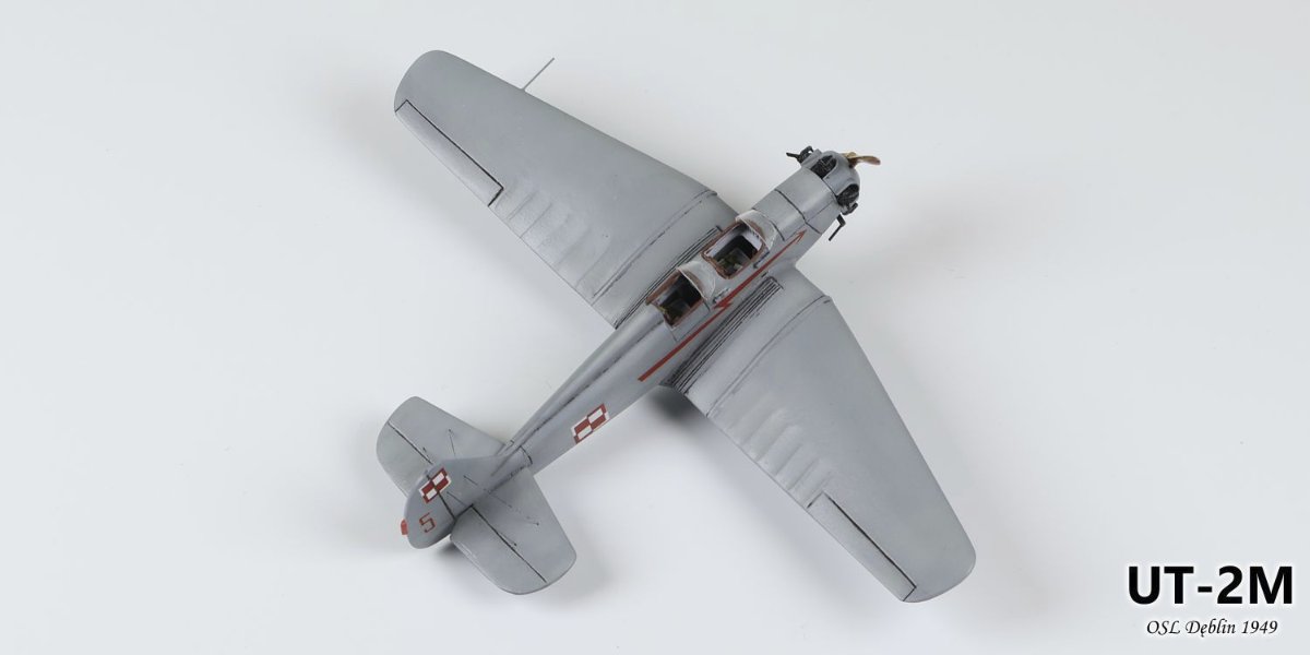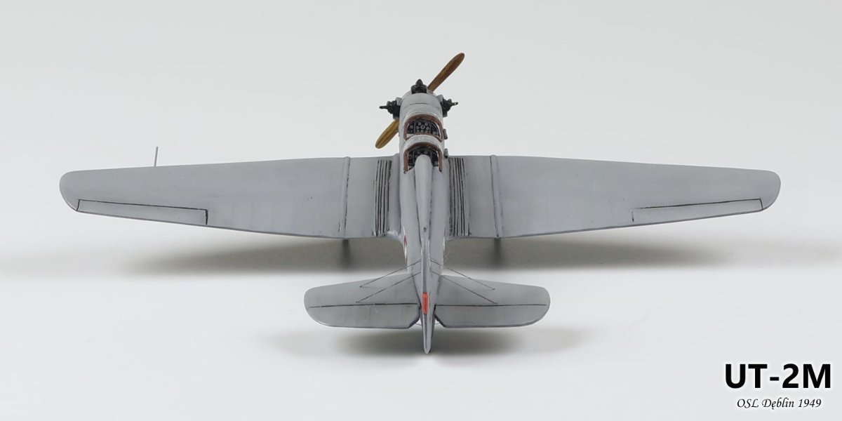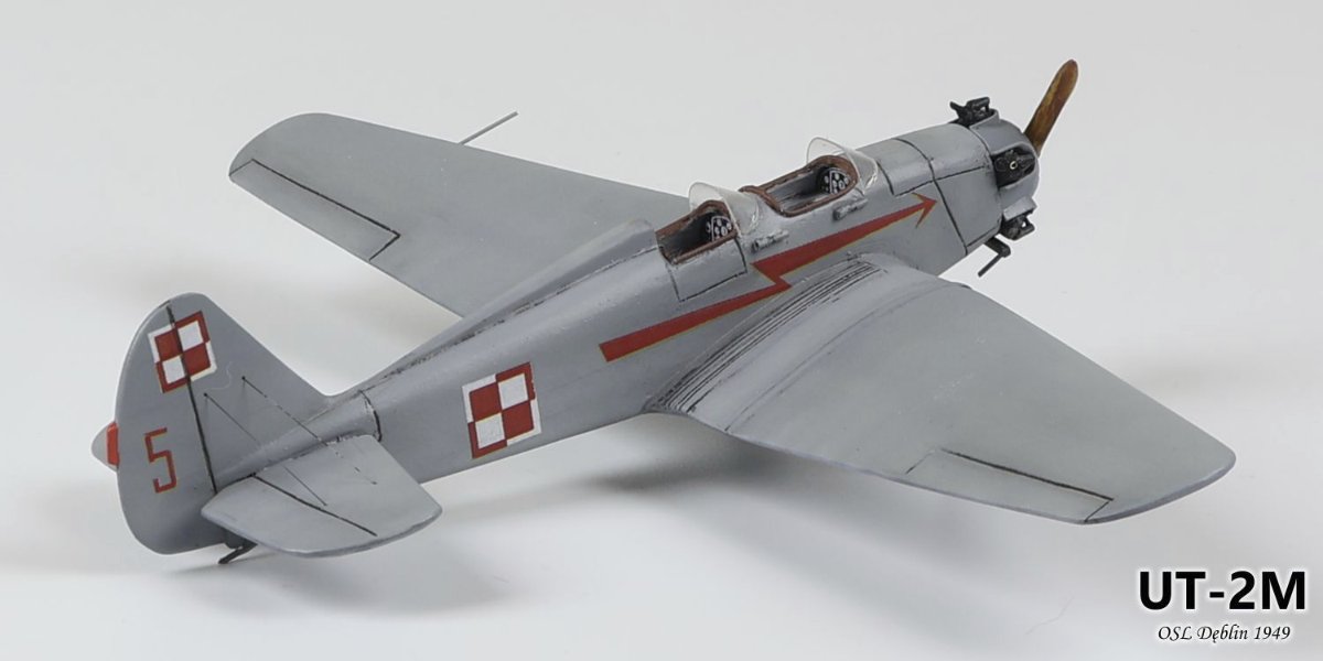 Kon_Bar Napisano 3 godziny temu Share Napisano 3 godziny temu O samolocie: UT-2M to opracowany w 1940 (1941?) głęboko zmodernizowany UT-2. Modernizacje objęły wiele podzespołów. Najbardziej widoczne to zmiana skosu skrzydeł i obrysu usterzenia pionowego i poziomego. Nowa konstrukcja była łatwiejsza w pilotażu a co najważniejsze łatwo wychodziła z korkociągu O egzemplarzu: Po II wojnie światowej UT-2 i UT-2M wykorzystywano do szkolenia pilotów w Oficerskiej Szkole Lotniczej (OSL) w Dęblinie ("Szkołą Orląt"). Używano ich do nauki podstawowego pilotażu. Przedstawiony egzemplarz ma malowanie opracowane na podstawie zdjęcia z pokazów ze Święta Lotnictwa w 1949 roku ("Polski samolot i barwa. 1943-2016", str. 264). O modelu: Broplan wypuścił model UT-2M w technologii vacuform. Chyba nie skończyłbym go gdyby nie posiadane części opracowane wcześniej dla UT-2M. Oprócz osłony silnika (zmodyfikowana aby dopasować ją do obrysu kadłuba modelu Broplanu) śmigła i podwozia dodatkowo wykorzystałem druk 3D do stworzenia foteli. Podobnie jak w modelu UT-2 wykorzystałem kalki własnego projektu oraz silnik wydrukowany w technologii 3D. Zapraszam do galerii No i na koniec dla wytrwałych zdjęcia rodzinne 3 Cytuj Odnośnik do komentarza Udostępnij na innych stronach More sharing options...