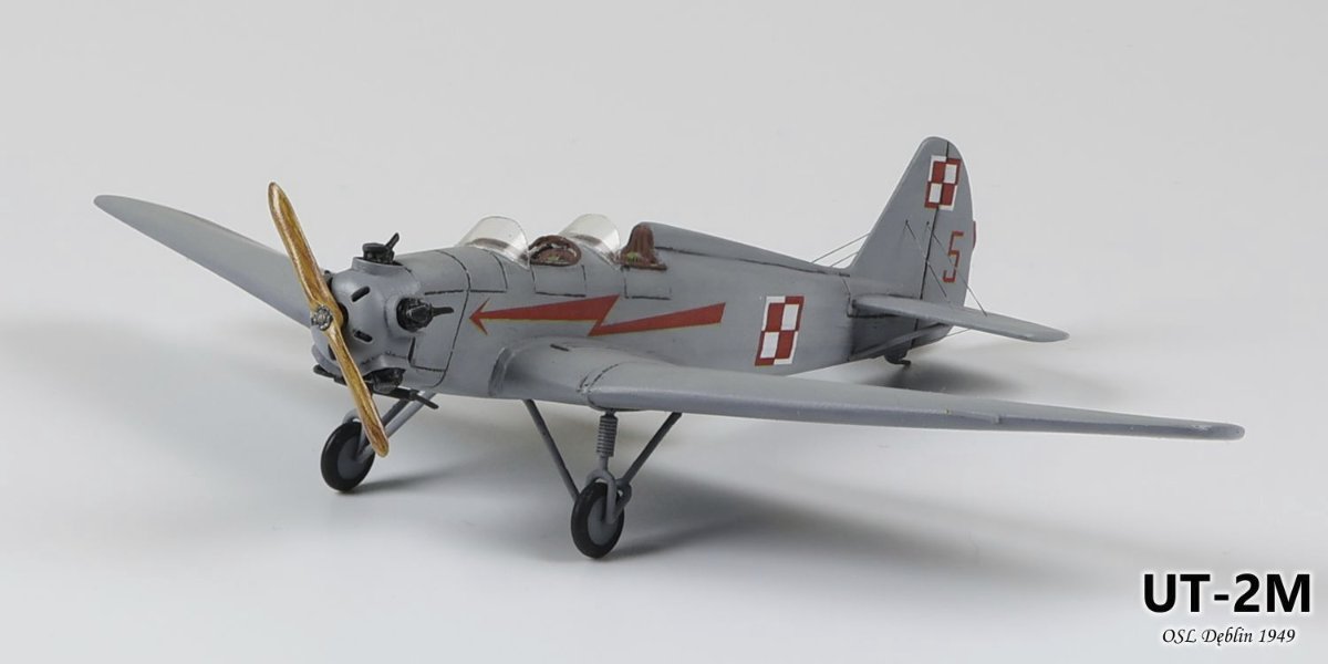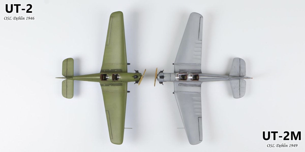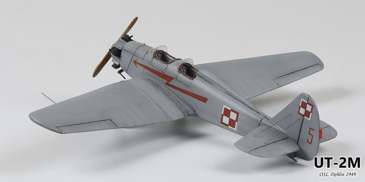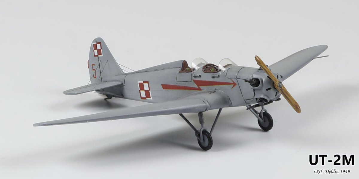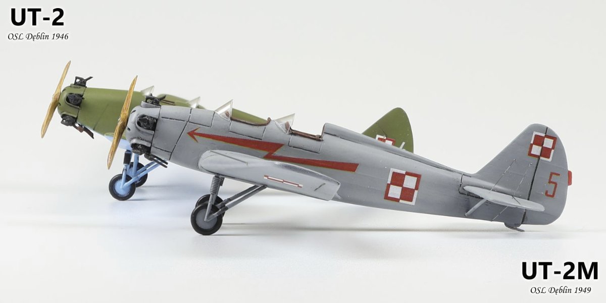 Kon_Bar Napisano 3 godziny temu Share Napisano 3 godziny temu O samolocie: UT-2M to opracowany w 1940 (1941?) głęboko zmodernizowany UT-2. Modernizacje objęły wiele podzespołów. Najbardziej widoczne to zmiana skosu skrzydeł i obrysu usterzenia pionowego i poziomego. Nowa konstrukcja była łatwiejsza w pilotażu a co najważniejsze łatwo wychodziła z korkociągu O egzemplarzu: Po II wojnie światowej UT-2 i UT-2M wykorzystywano do szkolenia pilotów w Oficerskiej Szkole Lotniczej (OSL) w Dęblinie ("Szkołą Orląt"). Używano ich do nauki podstawowego pilotażu. Przedstawiony egzemplarz ma malowanie opracowane na podstawie zdjęcia z pokazów ze Święta Lotnictwa w 1949 roku ("Polski samolot i barwa. 1943-2016", str. 264). O modelu: Broplan wypuścił model UT-2M w technologii vacuform. Chyba nie skończyłbym go gdyby nie posiadane części opracowane wcześniej dla UT-2M. Oprócz osłony silnika (zmodyfikowana aby dopasować ją do obrysu kadłuba modelu Broplanu) śmigła i podwozia dodatkowo wykorzystałem druk 3D do stworzenia foteli. Podobnie jak w modelu UT-2 wykorzystałem kalki własnego projektu oraz silnik wydrukowany w technologii 3D. Zapraszam do galerii No i na koniec dla wytrwałych zdjęcia rodzinne 3 Cytuj Odnośnik do komentarza Udostępnij na innych stronach More sharing options...