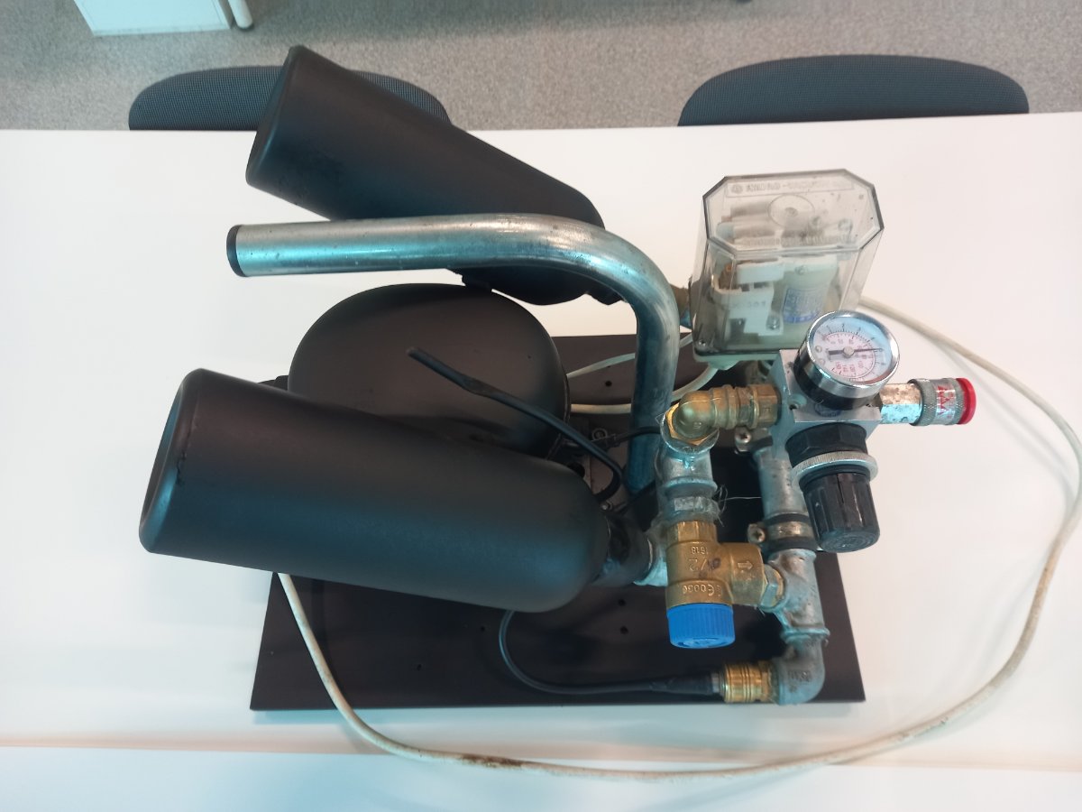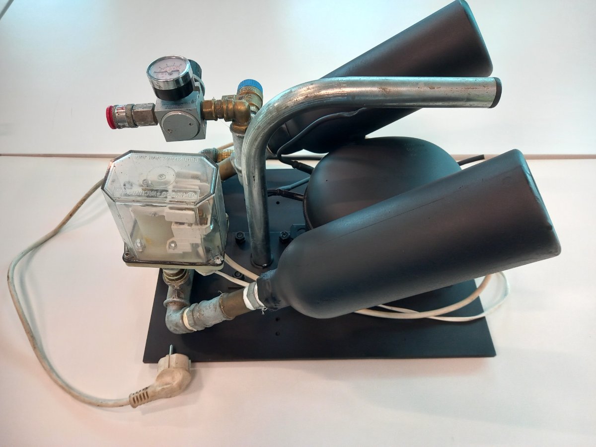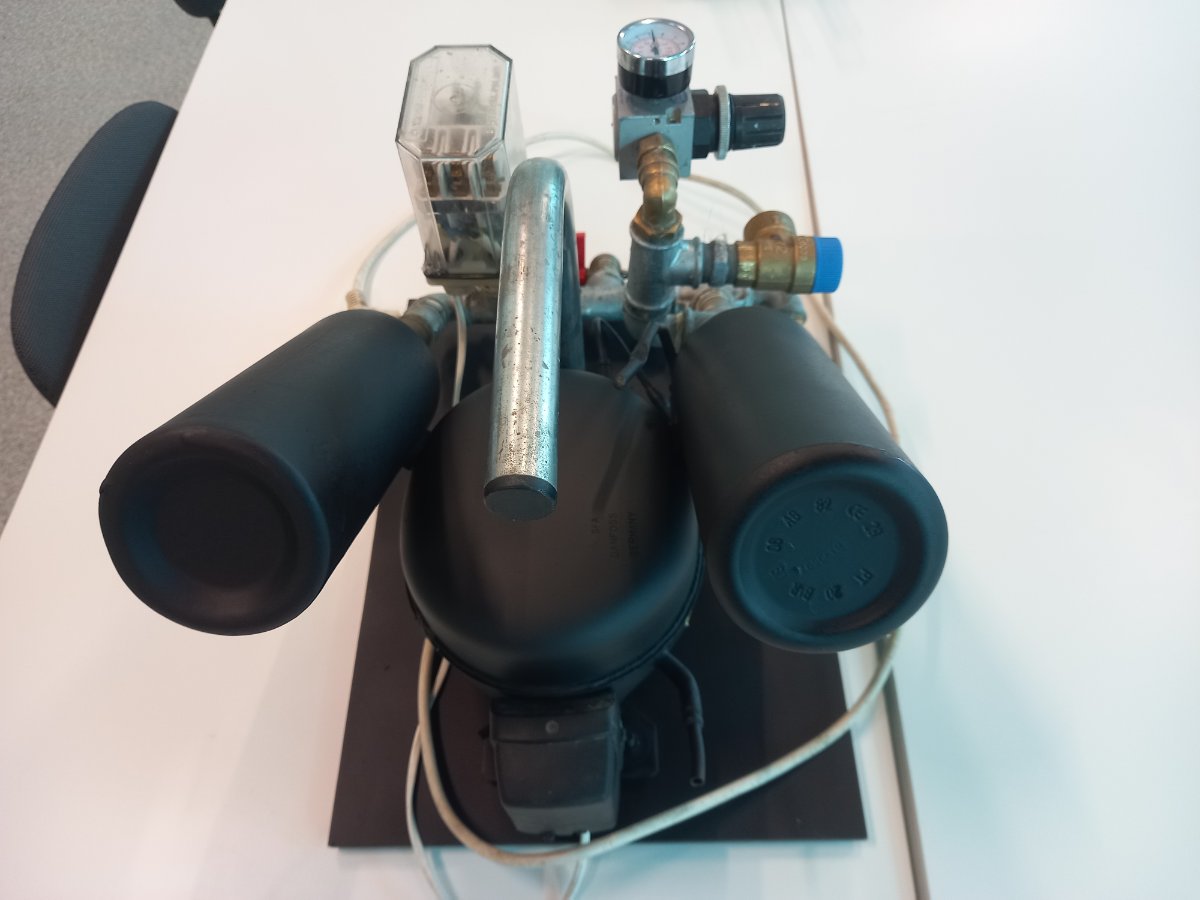 jacmin Napisano 6 godzin temu Share Napisano 6 godzin temu Sprzedam sprężarkę modelarską jak na zdjęciu. Podstawę konstrukcji stanowią: agregat lodówkowy, 2 butle wyrównawcze z gaśnic samochodowych, presostat, reduktor, i zawór bezpieczeństwa. Konstrukcja przeznaczona jest przede wszystkim jako źródło sprężonego powietrza dla różnego rodzaju aerografów modelarskich, ale nadaje się również do innych zastosowań nie wymagających dużej wydajności, takich jak np. pompowanie kół rowerowych. Zaletą sprężarki jest jej bardzo cicha praca (co ma duże znaczenie jeśli nasz warsztat modelarski znajduje się w mieszkaniu) oraz niewielkie wymiary. Po włączeniu sprężarki agregat pompuje powietrze do butli wyrównawczych. Po osiągnięciu 7 barów presostat wyłącza zasilanie. Po ustawieniu ciśnienia na reduktorze i rozpoczęciu poboru powietrza, ciśnienie w układzie zaczyna spadać aż do ok 4,5 bara. Wtedy presostat załącza zasilanie agregatu i cykl ładowania butli się powtarza. Sprężarka posiada zawór bezpieczeństwa fabrycznie ustawiony na 8 barów. Ma on za zadanie wypuszczenie z układu nadmiaru powietrza w przypadku gdyby presostat uległ awarii i nie wyłączył sprężarki po osiągnięciu ciśnienia 7 bar. Butle zostały przetestowane ciśnieniem 12 bar przez 2 doby. Naturalnym zjawiskiem podczas pracy sprężarki może być powstawanie skroplin czy przedostawanie się drobin oleju do układu. Można je łatwo usunąć przez zawór położony w najniższym punkcie układu. Ułatwia to też nachylenie butli. Wielozadaniowość sprężarki zapewnia standardowa szybkozłączka powietrzna oraz redukcja na szybkozłączkę aerografową, pozwalającą na podłączenie aerografu modelarskiego. Ze względu na zastosowanie w konstrukcji agregatu lodówkowego możliwy jest jedynie odbiór osobisty w Warszawie lub Płońsku. Po prostu podczas transportu paczka może być ustawiana w różnych pozycjach co może spowodować wyciek oleju z agregatu. W obu miastach dowiozę sprzęt pod dowolny adres. Testowanie przed zakupem możliwe a nawet wskazane. Cena 500zł. Za dopłatą 50zł mogę dodać wężyk ciśnieniowy do aerografu oraz nowy, chiński aerograf z dyszą 0,3mm. Odnośnik do komentarza Udostępnij na innych stronach More sharing options...