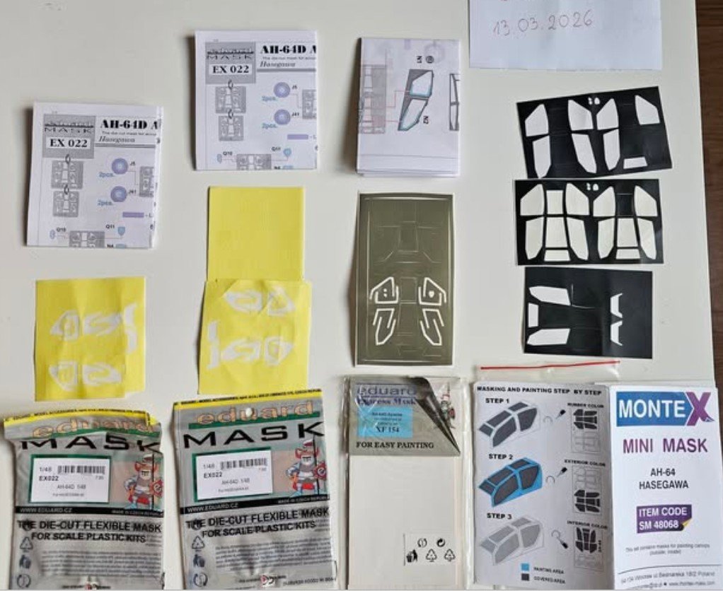 Headhunter88 Napisano 14 Marca Share Napisano 14 Marca Witam, oferuję 4 lekko zdekompletowane zestawy masek do modelu 1/48 Hasegawa AH64A/D/E. Spokojnie można nimi zamaskować oszklenie 2 lub 3 modeli, a jak wiadomo AH64 juz niedługo w Wojsku Polskim. Za wszystko 10 zl Mozliwość wysyłki lub wystawienia na olx/vinted/allegro. Zapraszam Odnośnik do komentarza Udostępnij na innych stronach More sharing options...