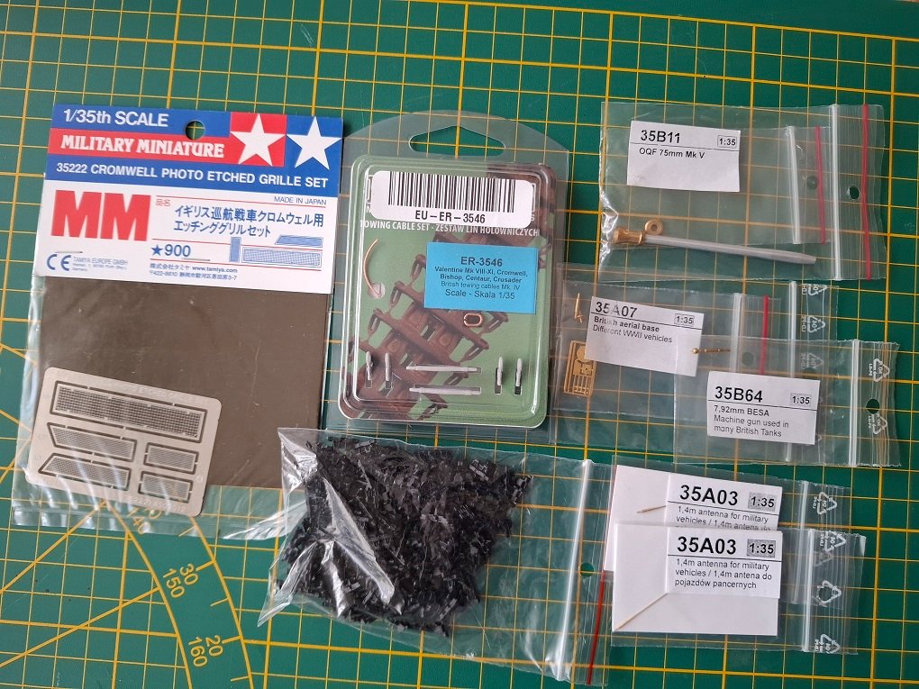 robertmodelarz Napisano 3 godziny temu Share Napisano 3 godziny temu Na matę modelarską trafia prosty w budowie, łatwy i przyjemny w sklejaniu model Tamiya 35221 British Cruiser Tank Mk.VIII, A27M Cromwell Mk.IV w skali 1/35. mały in-box: Dodatki, które planuję użyć w czasie budowy: -liny Eureka XXL ER-3546 British towing cable Mark IV for WWII British Tanks and SPG's - gąsienice Hobby Boss 81004 Cromwell tank tracks - blaszka Tamiya 35222 Cromwell Photo Etched Grille - metalowa lufa armaty RbModel 35B11 - lufa karabinu maszynowego BESA RbModel 35B64 - metalowa antena 35A07 - kalkomanie ToroModel 35D17 Cromwell i Centaur w PSZ część 2 1 Cytuj Odnośnik do komentarza Udostępnij na innych stronach More sharing options...