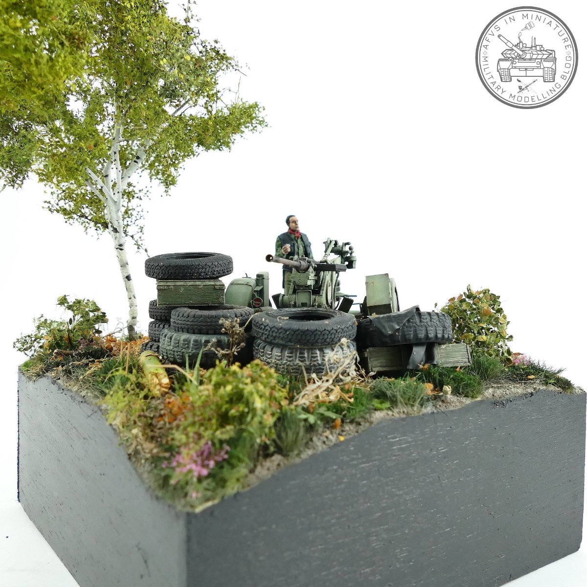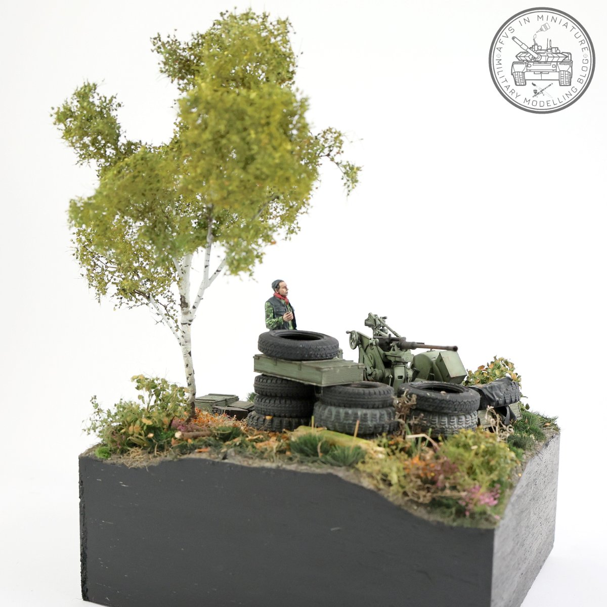 Bardzo podobają mi się Twoje warsztaty i realizacje, zwłaszcza że są połączone z głębokim researchem historycznym ciekawego i jednocześnie w sumie mało znanego konfliktu. Mało jest prac inspirowanych wojną w byłej Jugosławii i jeszcze mniej na takim poziomie jak Twój. W tej scence świetnie wyszło zabudowanie stanowiska ogniowego oponami, ten motyw w moim odczuciu bardzo trafnie oddaje specyfikę i atmosferę współczesnych konfliktów… właśnie zestawienie ze sobą broni z rzeczami codziennego użytku, nieraz typowo cywilnych, improwizowanych na szybko z tego co pod ręką… właśnie jakieś opony, folie, połamane plastiki w jaskrawych kolorach itp., jakoś do mnie to przemawia 🙂