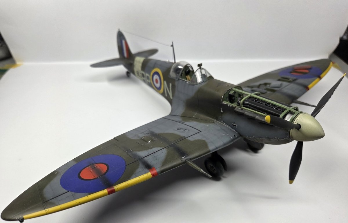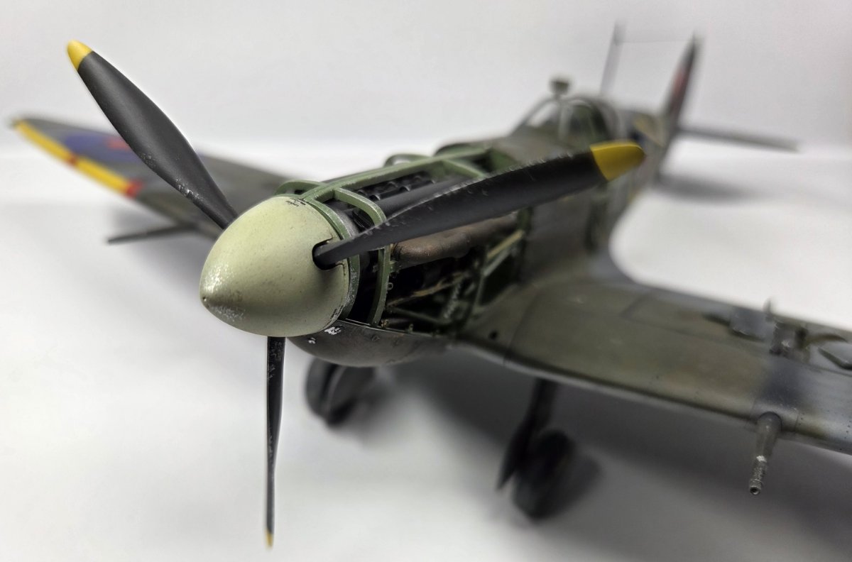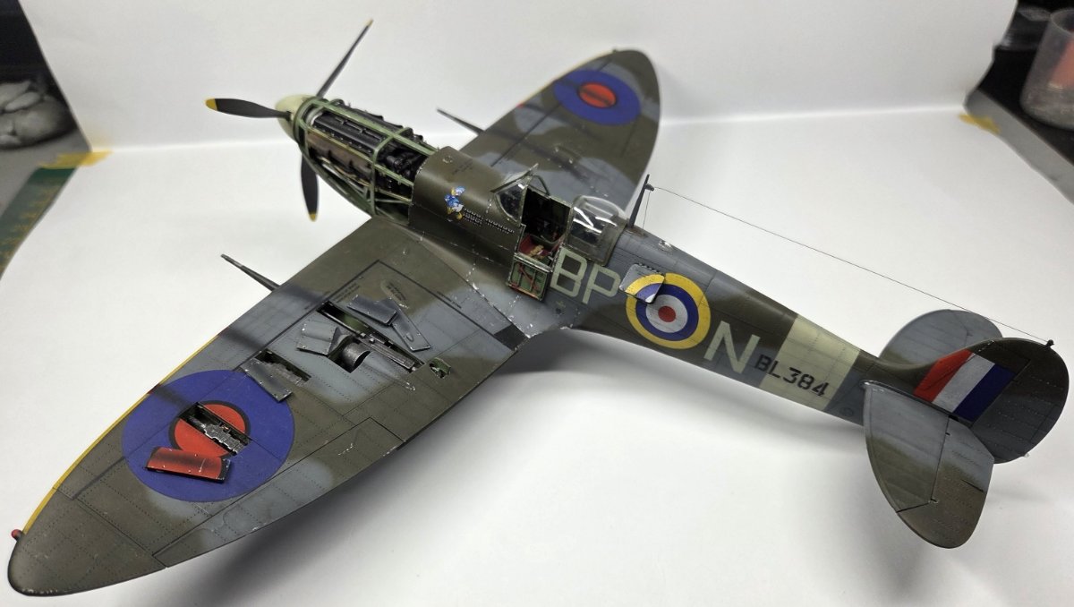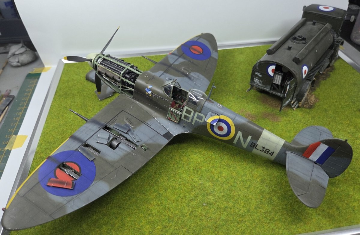 Mariusz80 Napisano Wtorek o 09:00 Share Napisano Wtorek o 09:00 Witam w kolejnej galerii, tym razem w nietypowej skali 1/35. Maszyna kapitana Johna Gibsona BL384. Sam model opisany szczegółowo na portalu KFS Miniatures, wraz z jego błędami merytorycznymi. Dobre opracowanie, przyjemne w sklejaniu. W kabinie użyte dodatki z Quinta Studio. Z minusów: tylko jedno malowanie i z tego co pamiętam kiepskie kalki, zwłaszcza czerwono-granatowe rondle na dolnych powierzchniach, gdzie musiały się lepiej wpasować w strukturę skrzydła. Nie pamiętam dokładnie, bo długo czekał na dokończenie po przygodzie z kotem, któa zakończyła się zniszczeniem podwozia głównego. Cytuj Odnośnik do komentarza Udostępnij na innych stronach More sharing options...