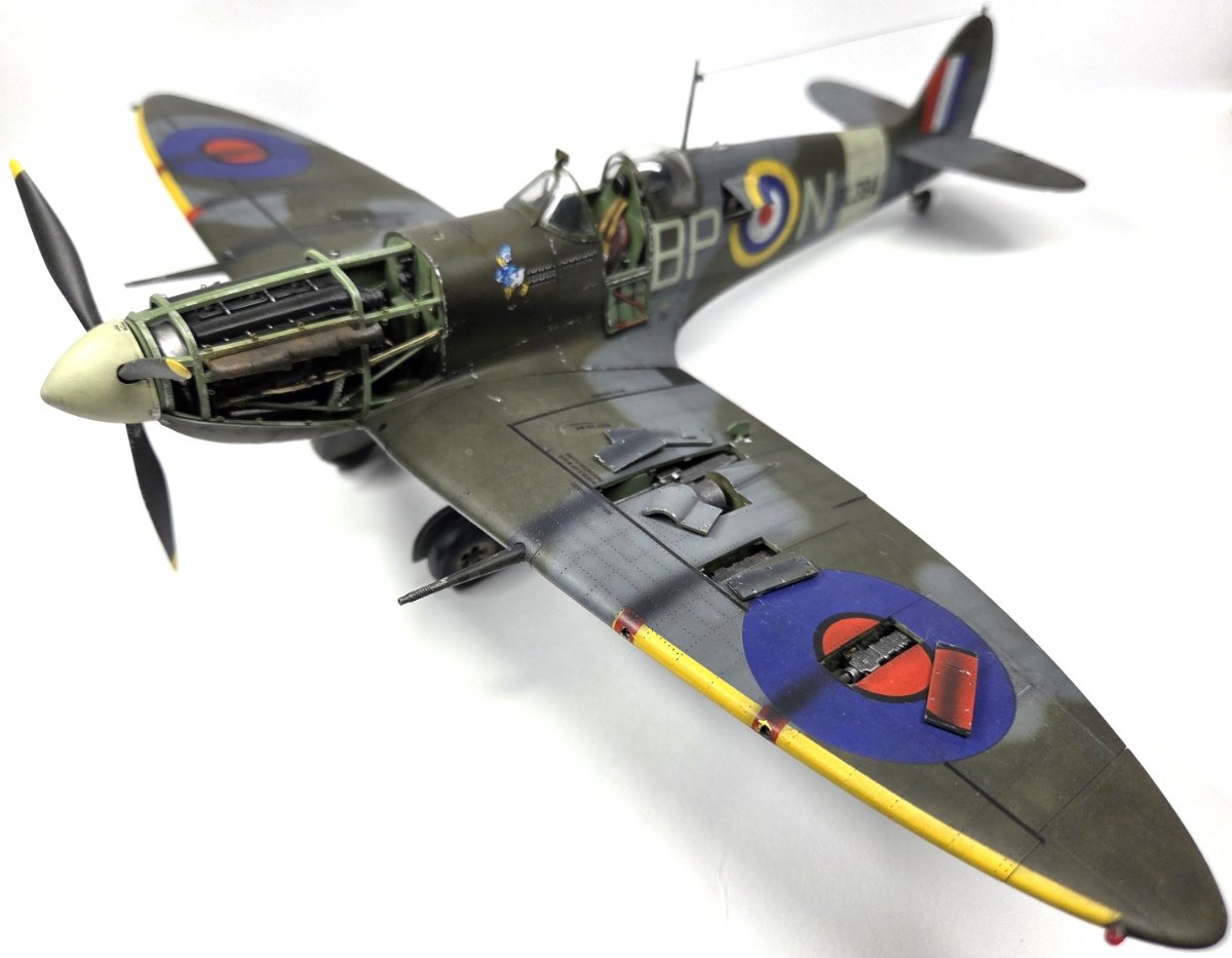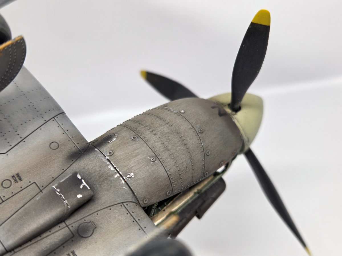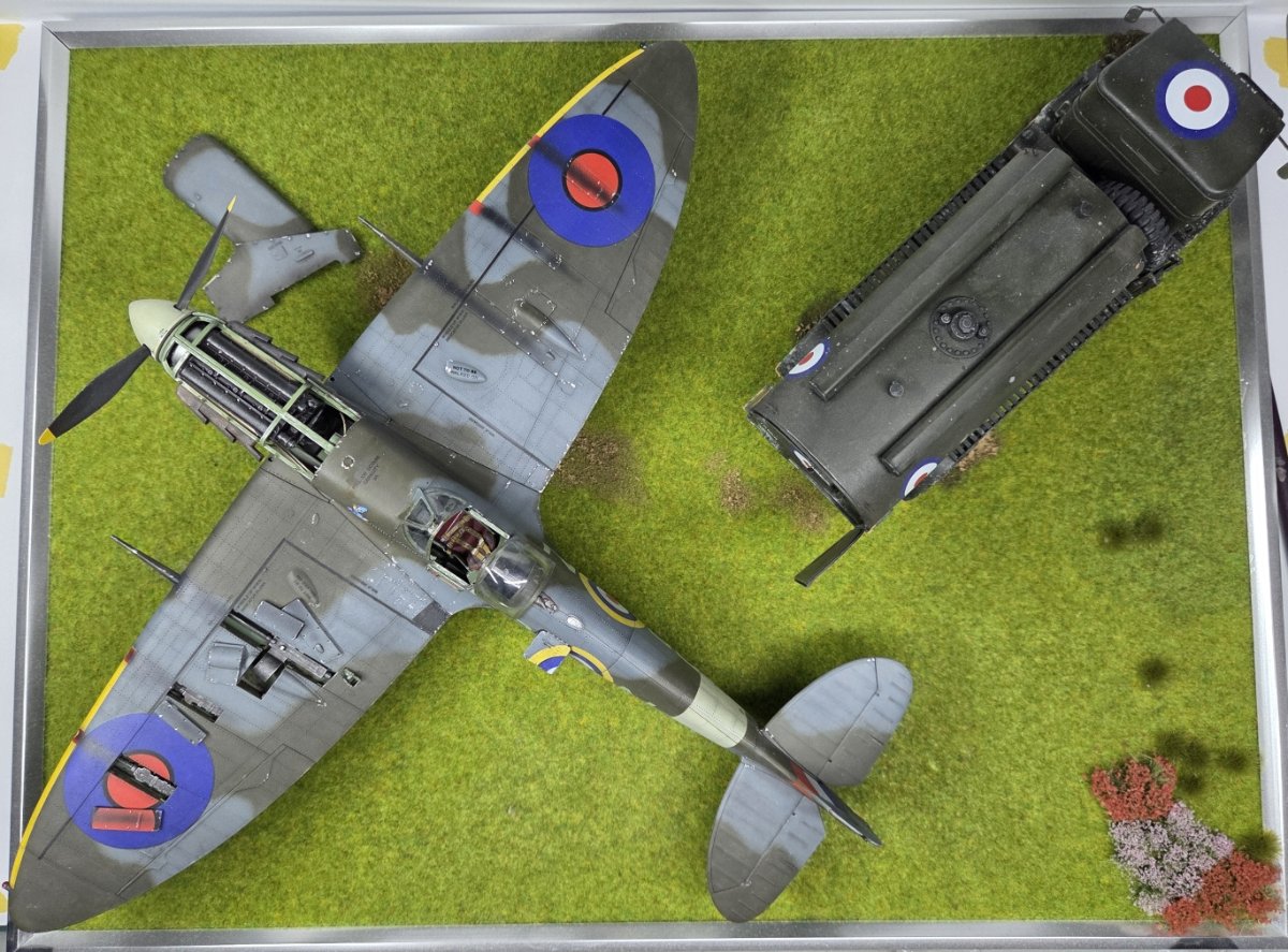 Mariusz80 Napisano Wtorek o 09:00 Share Napisano Wtorek o 09:00 Witam w kolejnej galerii, tym razem w nietypowej skali 1/35. Maszyna kapitana Johna Gibsona BL384. Sam model opisany szczegółowo na portalu KFS Miniatures, wraz z jego błędami merytorycznymi. Dobre opracowanie, przyjemne w sklejaniu. W kabinie użyte dodatki z Quinta Studio. Z minusów: tylko jedno malowanie i z tego co pamiętam kiepskie kalki, zwłaszcza czerwono-granatowe rondle na dolnych powierzchniach, gdzie musiały się lepiej wpasować w strukturę skrzydła. Nie pamiętam dokładnie, bo długo czekał na dokończenie po przygodzie z kotem, któa zakończyła się zniszczeniem podwozia głównego. Cytuj Odnośnik do komentarza Udostępnij na innych stronach More sharing options...