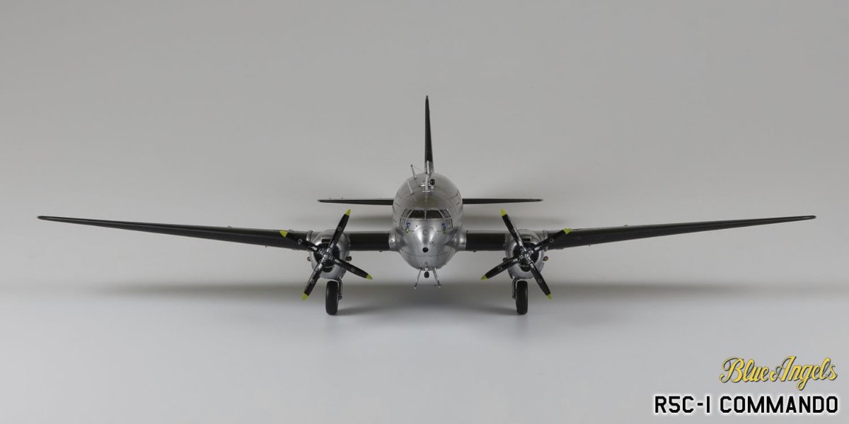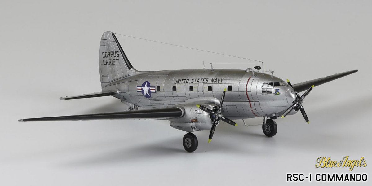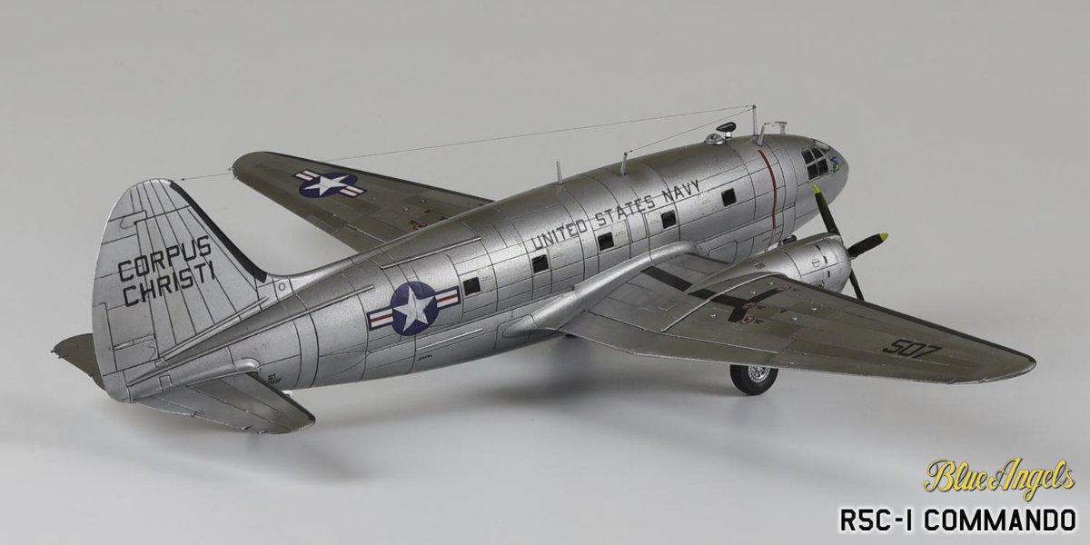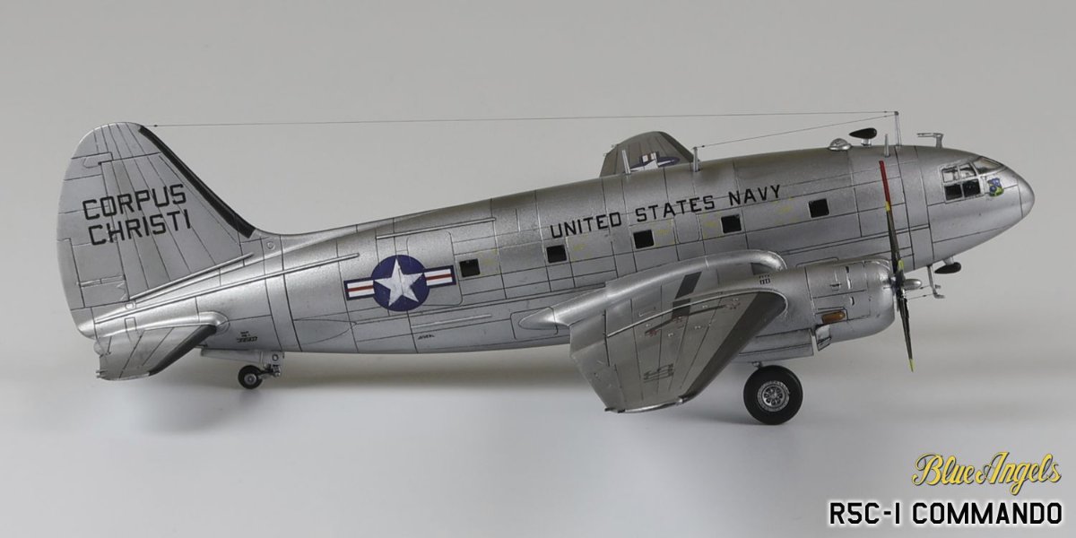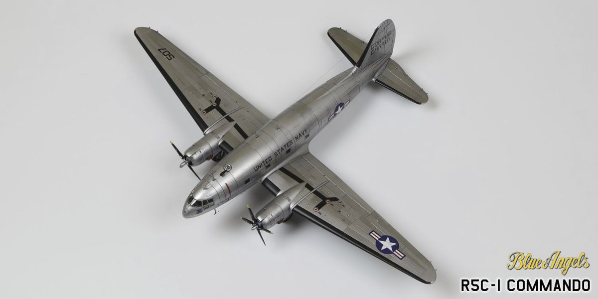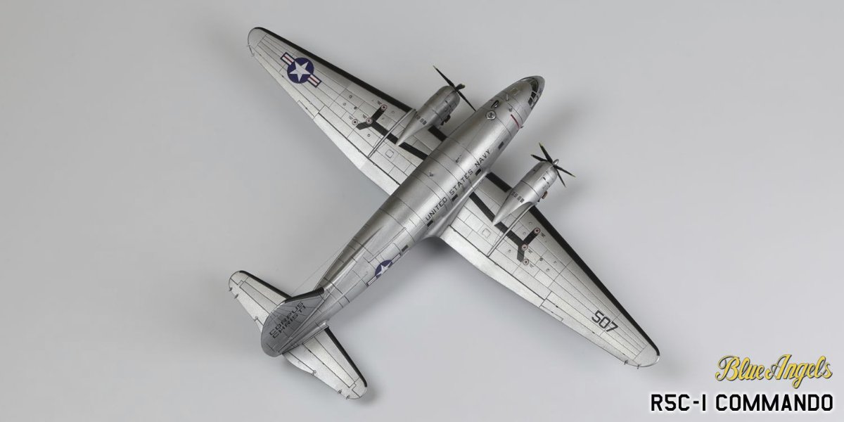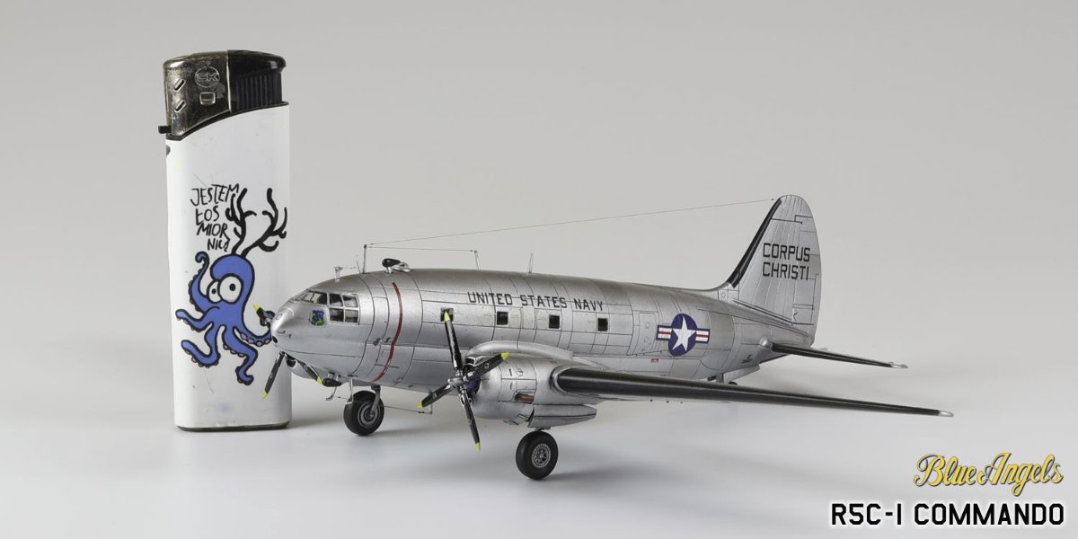 Kon_Bar Napisano 4 godziny temu Share Napisano 4 godziny temu (edytowane) O samolocie: R5C-1 Commando to amerykański dwusilnikowy samolot transportowy z czasów II Wojny Światowej, opracowany przez Curtiss-Wright na bazie projektu CW-20. Dolnopłat o metalowej konstrukcji półskorupowej, napędzany dwoma silnikami gwiazdowymi Pratt & Whitney R-2800. R5C-1 był podwersją C-46A produkowaną specjalnie dla US Marine Corps. Mógł transportować 40 żołnierzy lub 33 rannych na noszach lub do 6 ton. ładunku. Ceniony za prędkość, zasięg i ładowność. O egzemplarzu: Curtiss R5C-1, BuNo 39507, zwany także "Oldie" był używany w latach 1953-1956 (?) jako samolot wsparcia dla zespołu akrobacyjnego "Blue Angels". Był też pierwszym samolotem wsparcia noszącym oznaczenia zespołu (skromne, bo skromne ale jednak - logo przy oknach kabiny pilotów). O modelu: Model wykonany praktycznie "z pudła" - dodałem od siebie jedynie naciągi anten i kalkomanie dla maszyny 39507 z bazy Corpus Christi (TX). Dawno nie składałem tak fajnie spasowanego modelu. Ilość detali jak na 1:144 jak dla mnie wystarczająca. Zapraszam do galerii Pierwsza fotka dla oddania skali "potwora" I już bez gadania: Jedno zbliżenie - makro odbiera mi całą przyjemność z odbioru, ale narobiłem się przy naklejkach Wytrwałych, którzy dotarli do końca galerii zachęcam do skomentowania Edytowane 3 godziny temu przez Kon_Bar 6 Cytuj Odnośnik do komentarza Udostępnij na innych stronach More sharing options...