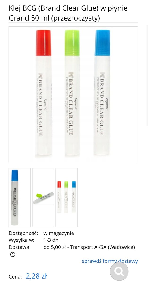 Bartosz.B Napisano 8 godzin temu Share Napisano 8 godzin temu (edytowane) Klej BCG do papieru, reszte chwyci farba i lakier . Klej jest przezroczysty mozna dodatkowo rozcieńczyć kroplą sliny, a po odparowaniu nie ma po nim sladu Edytowane 8 godzin temu przez Bartosz.B 1 1 Cytuj Odnośnik do komentarza Udostępnij na innych stronach More sharing options...