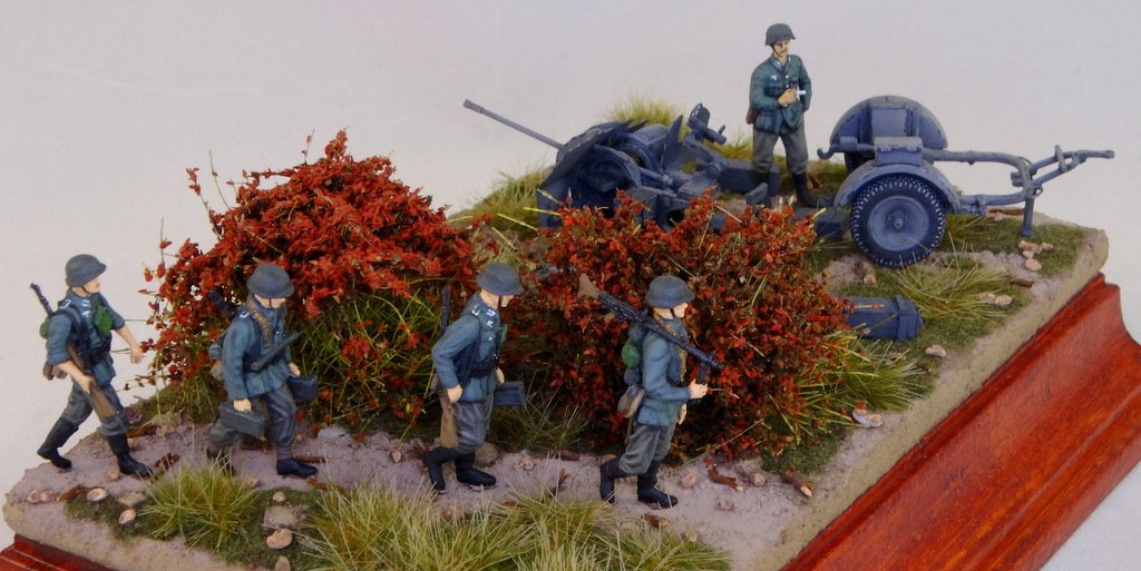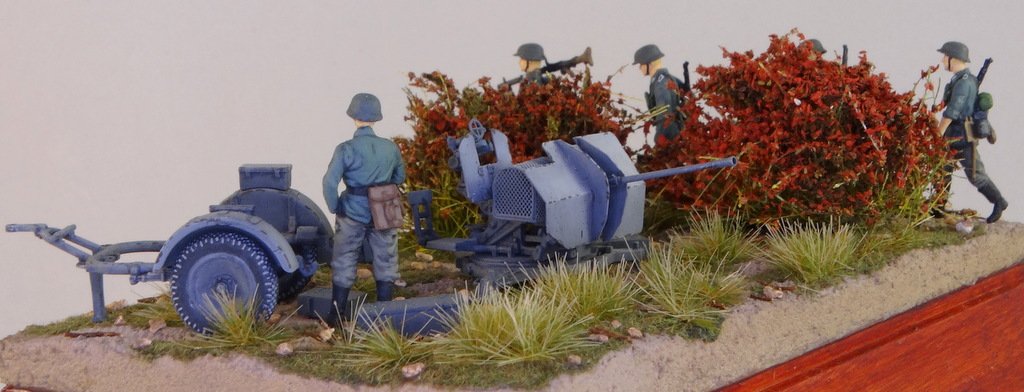 SławekK Napisano 20 godzin temu Share Napisano 20 godzin temu Taka cisza na forum, że postanowiłem nie czekać na weekend i już dziś wrzucić kolejny model. Tym razem 20 mm Flak 38 z polskiej firmy IBG. W zestawie są dwa działka. Wykorzystałem metalową lufę od Rb i blaszki. Działko jest dość małe, więc na podstawce wstawiłem kilka figurek Preisera, czerwone krzaczki, trochę trawek i czeskie dodatki do 20 mm Flaka. Przydało by się zdjęcie z monetą, żeby podkreślić że cała scena ma 10x15 cm. 3 Cytuj Odnośnik do komentarza Udostępnij na innych stronach More sharing options...