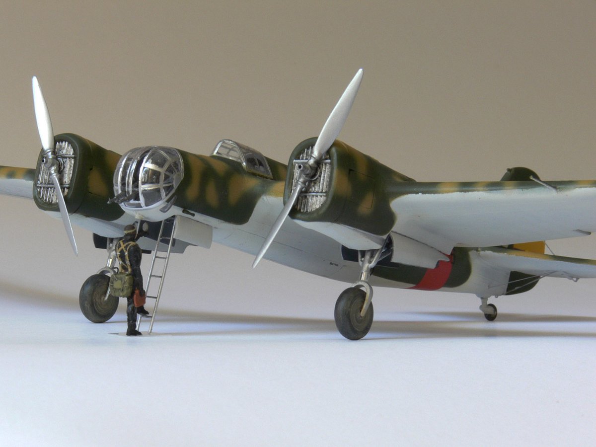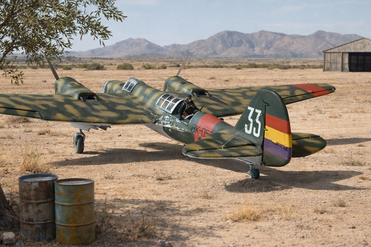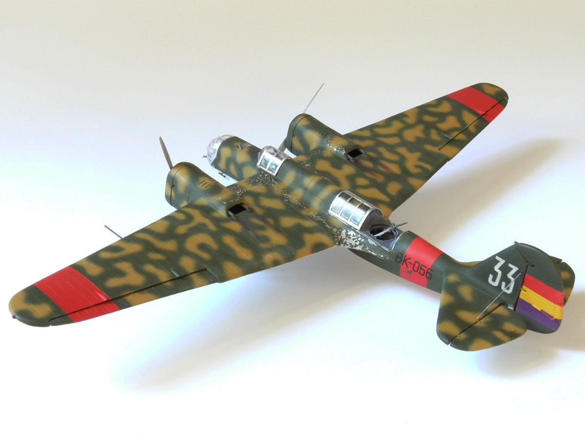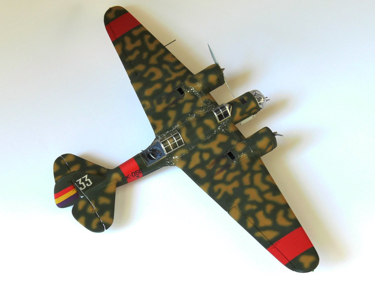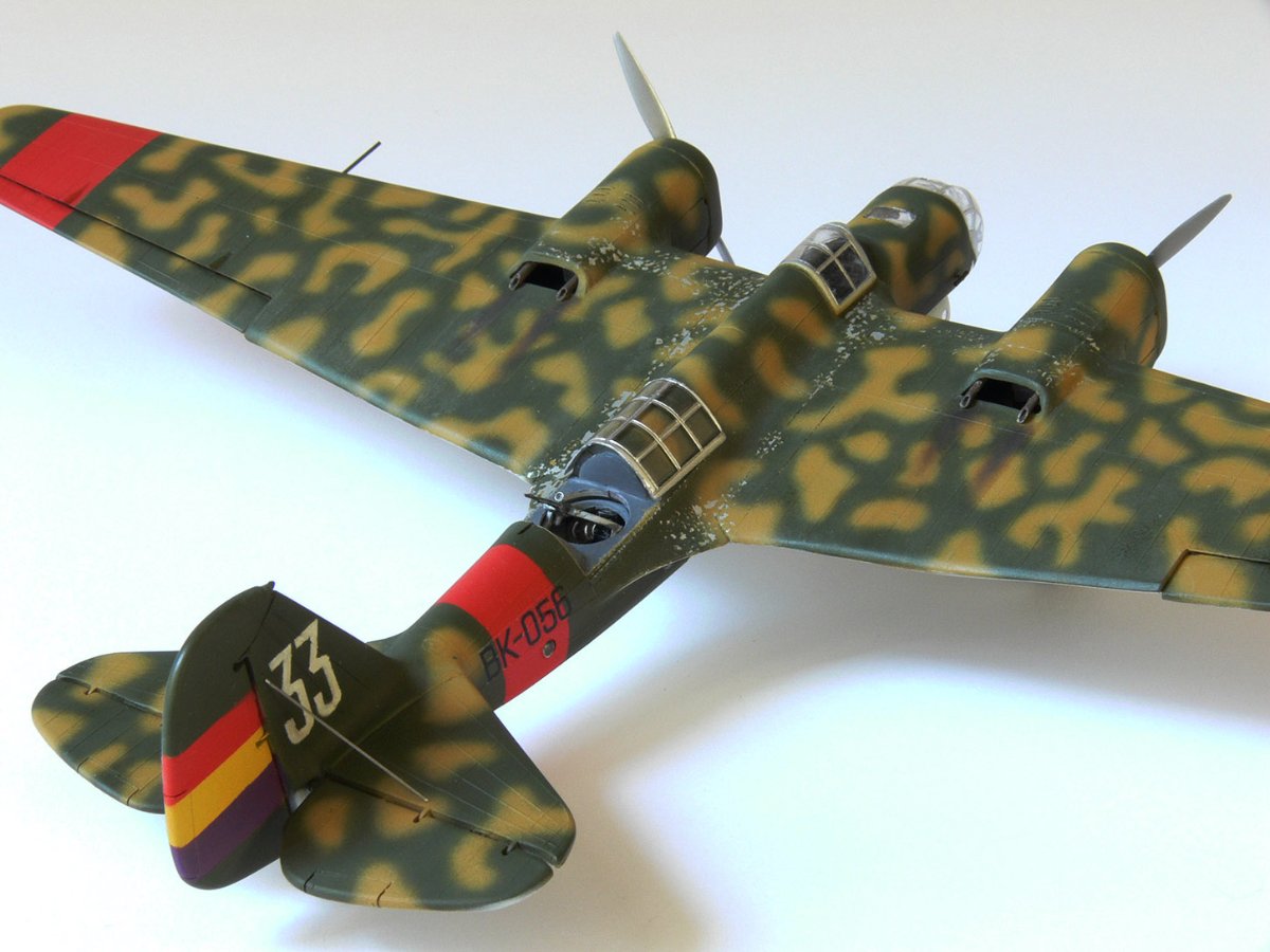 JollyMonk Napisano 7 godzin temu Share Napisano 7 godzin temu Wesołych Świąt wszystkim! Prezentuję model szybkiego bombowca Tupolew SB-2, należącego do Republikańskich Sił Powietrznych, z 1937 roku, z okresu hiszpańskiej wojny domowej. W moim modelarstwie preferuję tworzenie modeli typowych samolotów produkcyjnych, które odzwierciedlają ducha tamtych czasów. Zależało mi na pokazaniu samolotu w kamuflażu z napisem „BK” (Bombardero Katiushka) na boku, nawiązującym do nazwy nadanej mu przez Hiszpanów. Wybrany prototyp reprezentuje pierwszą połowę 1937 roku – ostatni egzemplarz samolotu bez hiszpańskich modyfikacji polowych. Zgodnie z moją tradycją, modele donieckiej fabryki składam „tak jak są”, bez istotnych modyfikacji. Innymi słowy, nie przerabiam linii podziału, nitowanie ani nie modyfikuję geometrii modelu: niech pozostanie on „pomnikiem” epoki. Dopuszczam drobne modyfikacje, które moim zdaniem ożywiają model. Przywiązuję większą wagę do malowania. W tym modelu zdecydowałem się umieścić oryginalnego pilota w kokpicie, otworzyłem kokpit nawigatora (z drobnymi modyfikacjami), wykonałem ster kierunku i drążki trymera, przewody podwozia, rurki Venturi i Pitota. Z aftermarketa użyłem owiewki Rob Taurus do Novo, masek Eduard do ICM, świateł lotniczych ELF, elastycznych nitkowych wsporników i kalkomanii z numerem kadłuba. Wszystkie pozostałe oznaczenia namalowałem za pomocą własnoręcznie wykonanych masek. Malowałem emaliami ARCUS (aluminium, piasek) i akrylowymi AK Real Colors (szaro-niebieskimi i ochronnymi). Odpryski zostały odwzorowane za pomocą Vallejo Chipping Medium. Należy zaznaczyć, że odpryski wykonałem nie na świeżej warstwie farby, ale po ukończeniu dwukolorowego kamuflażu. Zdjęcia przedstawiają kilka szczegółowych i powiększonych widoków, a także niektóre etapy budowy. Więcej szczegółów można znaleźć w opisie prac konstrukcyjnych na tym forum. Aby oddać klimat tamtych czasów, publikuję kilka pseudohistorycznych zdjęć. Po raz pierwszy do stworzenia tła użyłem sztucznej inteligencji, a nie Photoshopa. Dziękuję wszystkim, którzy wspierali mnie podczas budowy! 9 Cytuj Odnośnik do komentarza Udostępnij na innych stronach More sharing options...